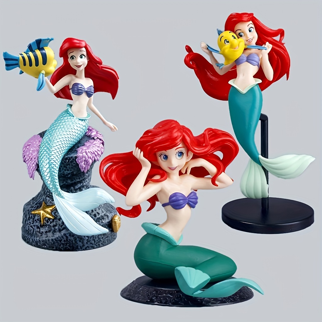 Disney Little Mermaid Ariel PVC Figure Set, Anime Mermaid Princess Collectible Model Kit, Authorized Decorative Cartoon Ornament for Car, Office, Home, Gift for Ages 14+