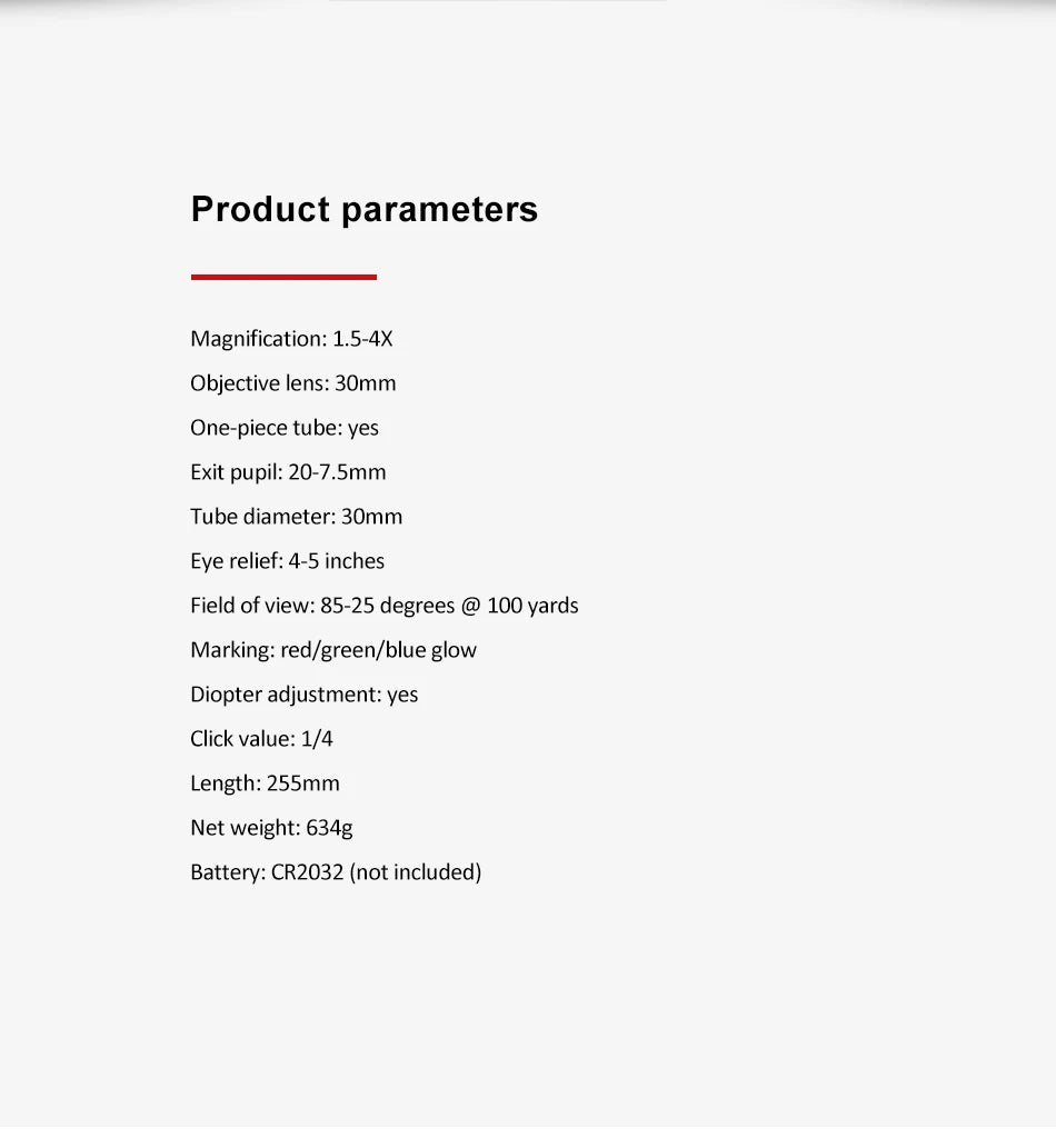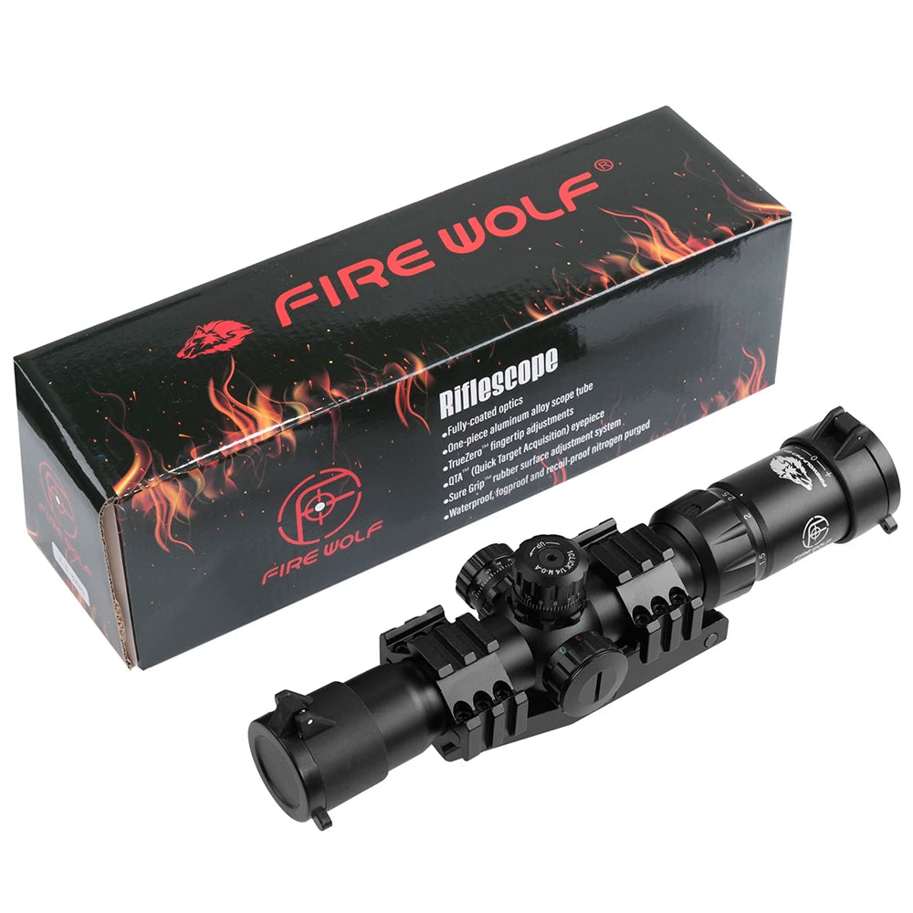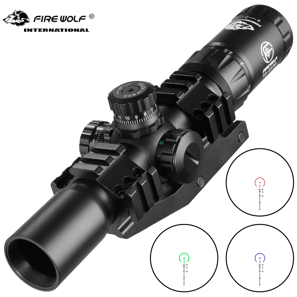 FIRE WOLF 1.5-4X30 Hunting Tactical Optical Rifle Scope with Red Green Illuminated Cross Turret lock Scope Range Airsoft Mirror