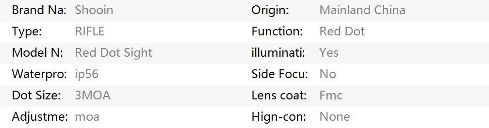 Model Number: Red Dot Sight