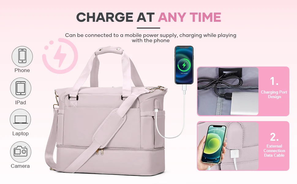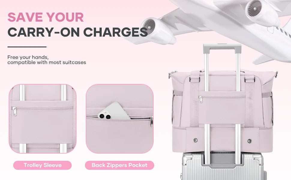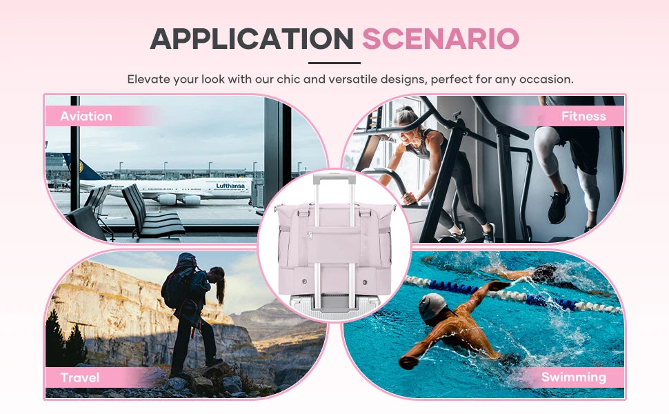 Gym Bag for Women, Large Travel Duffel Bag, Weekender Overnight Bag with Wet Pocket and Shoes Compartment for Travel, Gym, Yoga