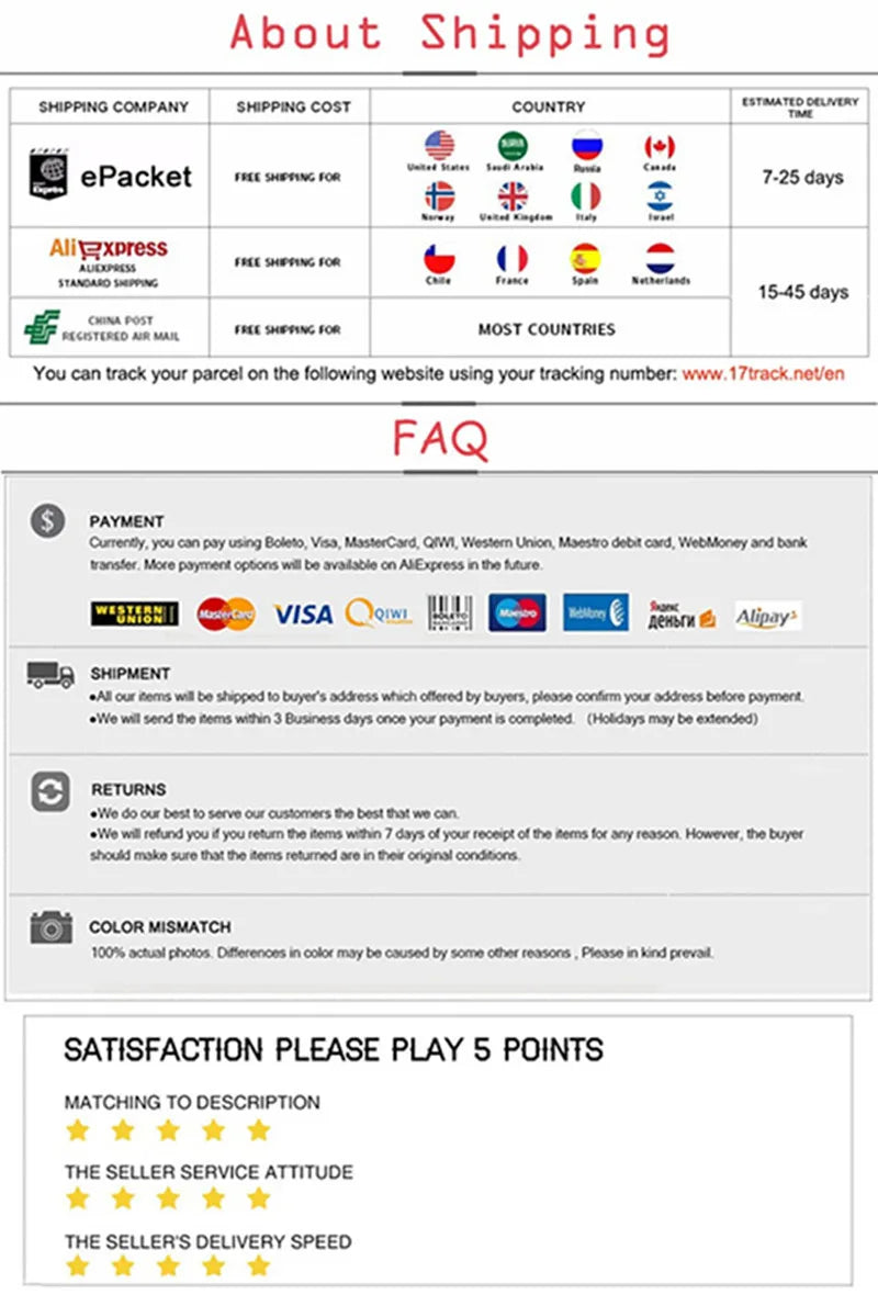 5.Due to lighting effects, monitor's brightness / contrast settings etc, there could be some slight differences in the color tone of the pictures and the actual item! All goods are subject to actual goods received