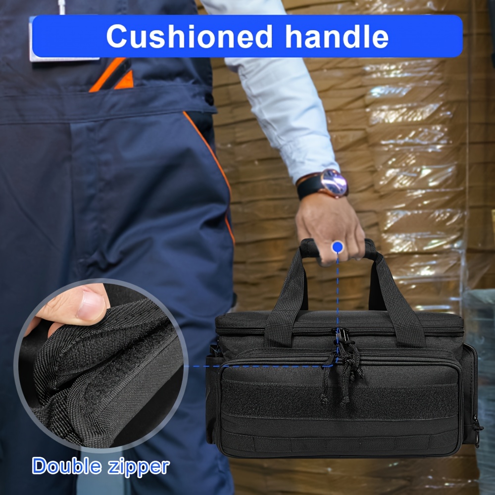 Heavy-duty 14-inch tactical tool bag with scratch-resistant bottom, durable black work case suitable for electricians, maintenance personnel, and craftsmen - essential multi-compartment tool storage pouch