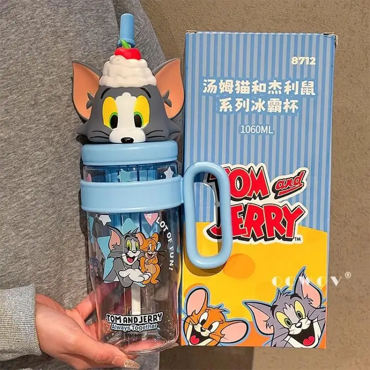 Kawaii Tom and Jerry Summer Straw Cup 1060 Ml Large-Capacity Student Outdoor Sports Fitness Water Couple Supplies Holiday Gifts