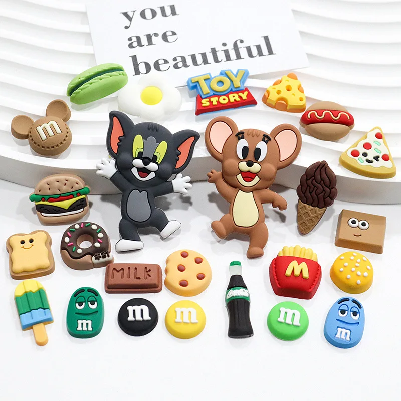 MINISO Dynamic Tom and Jerry set Food Theme for Cute Cartoon Shoe Charms Decoration Accessories for Classic Clog X-mas Gifts