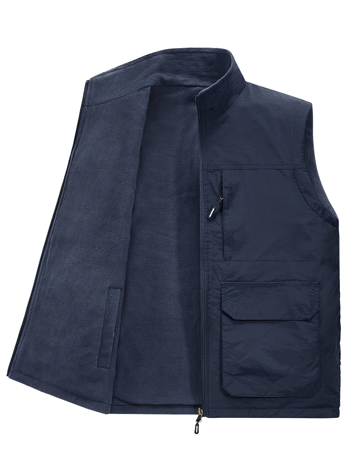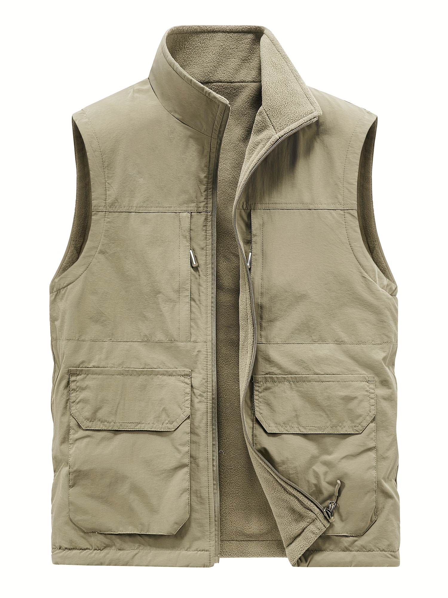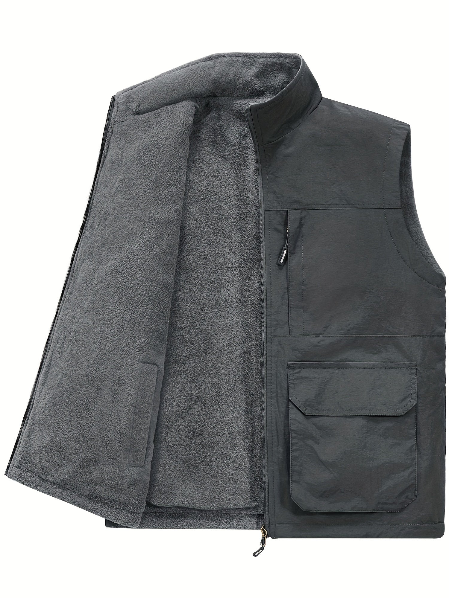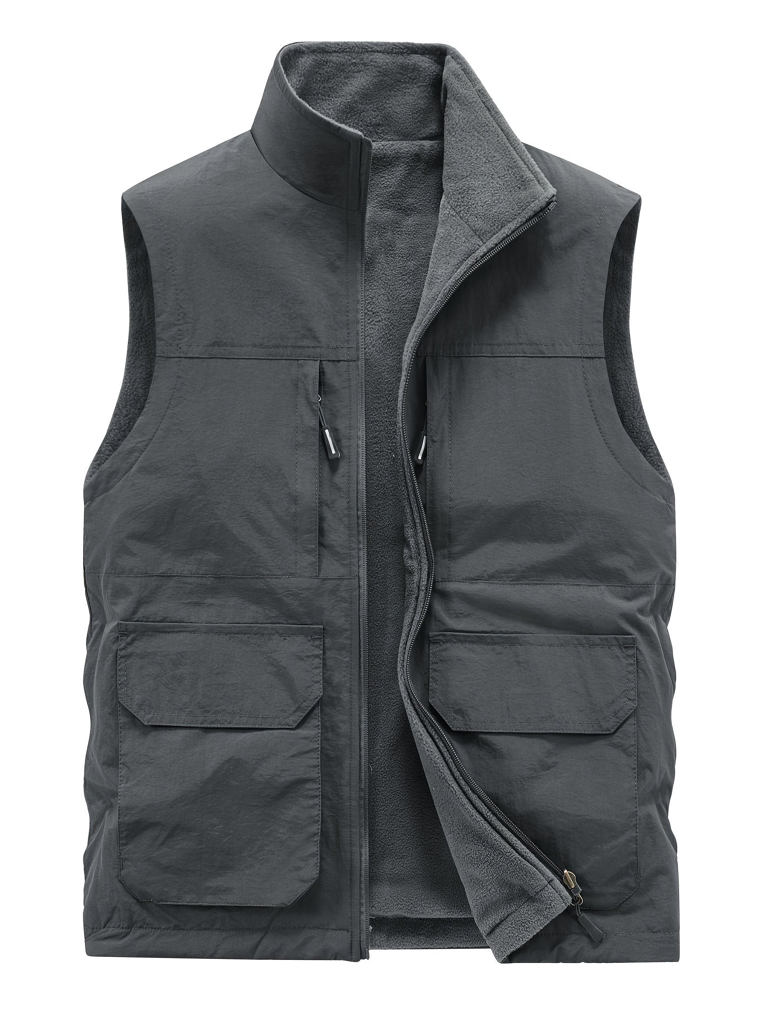 Multi Pockets Reversible Cargo Vest, Men's Casual Outwear Stand Collar Zip Up Vest For Outdoor Fishing Photography