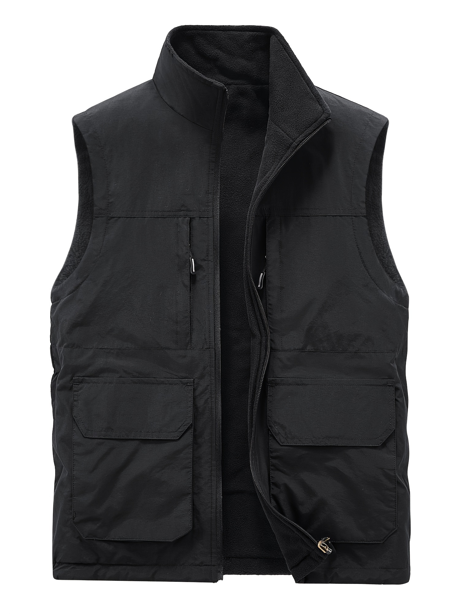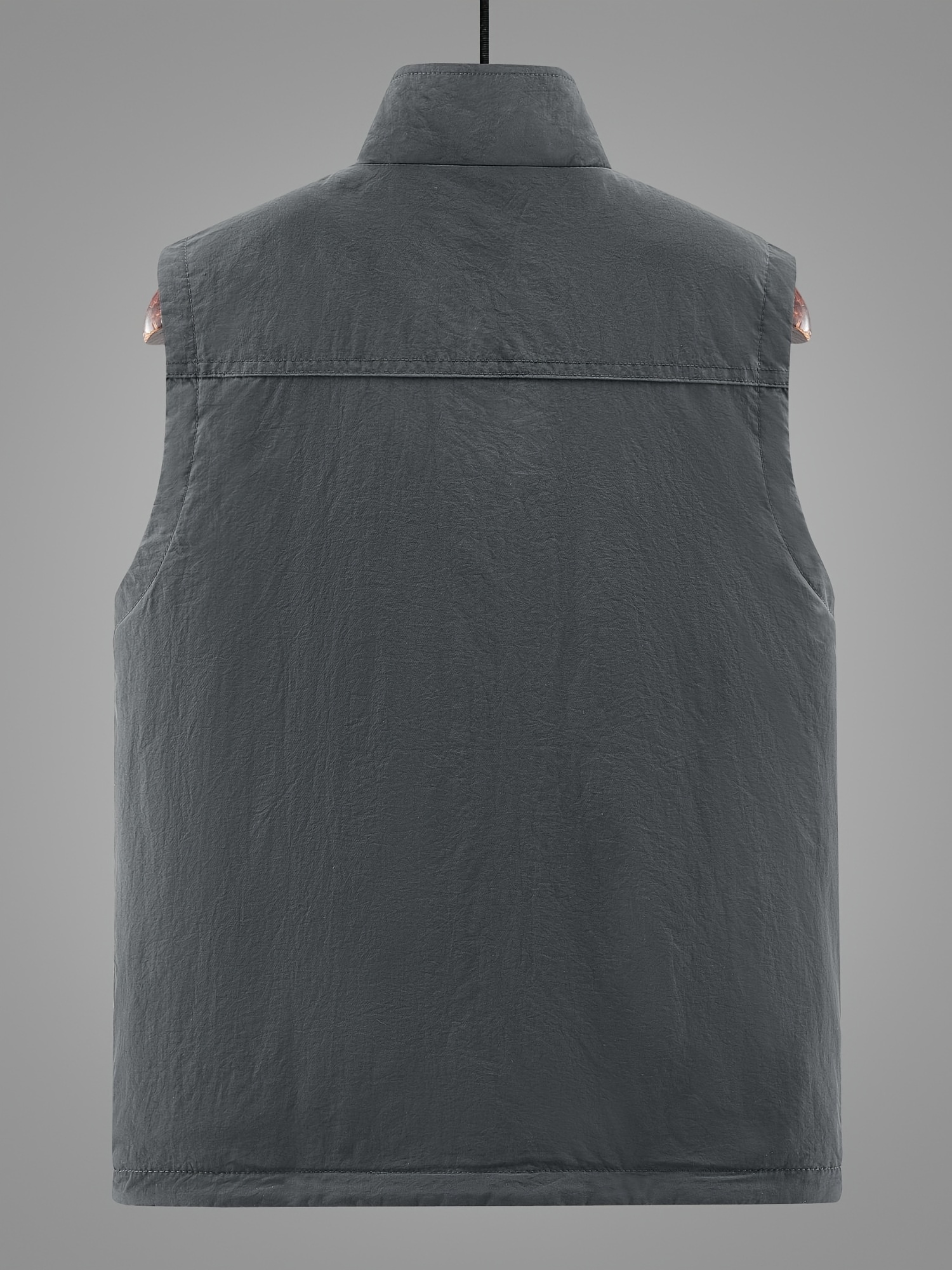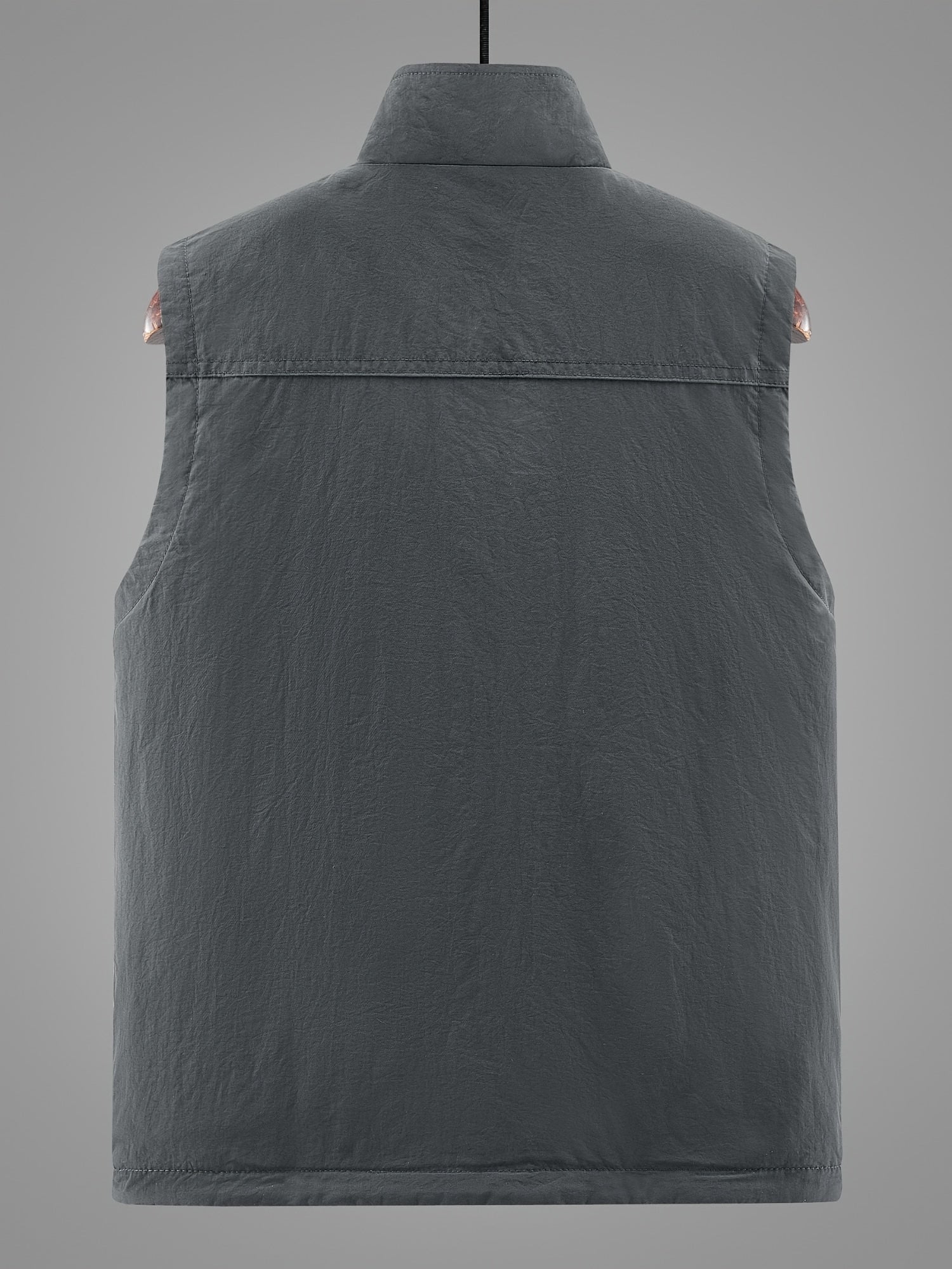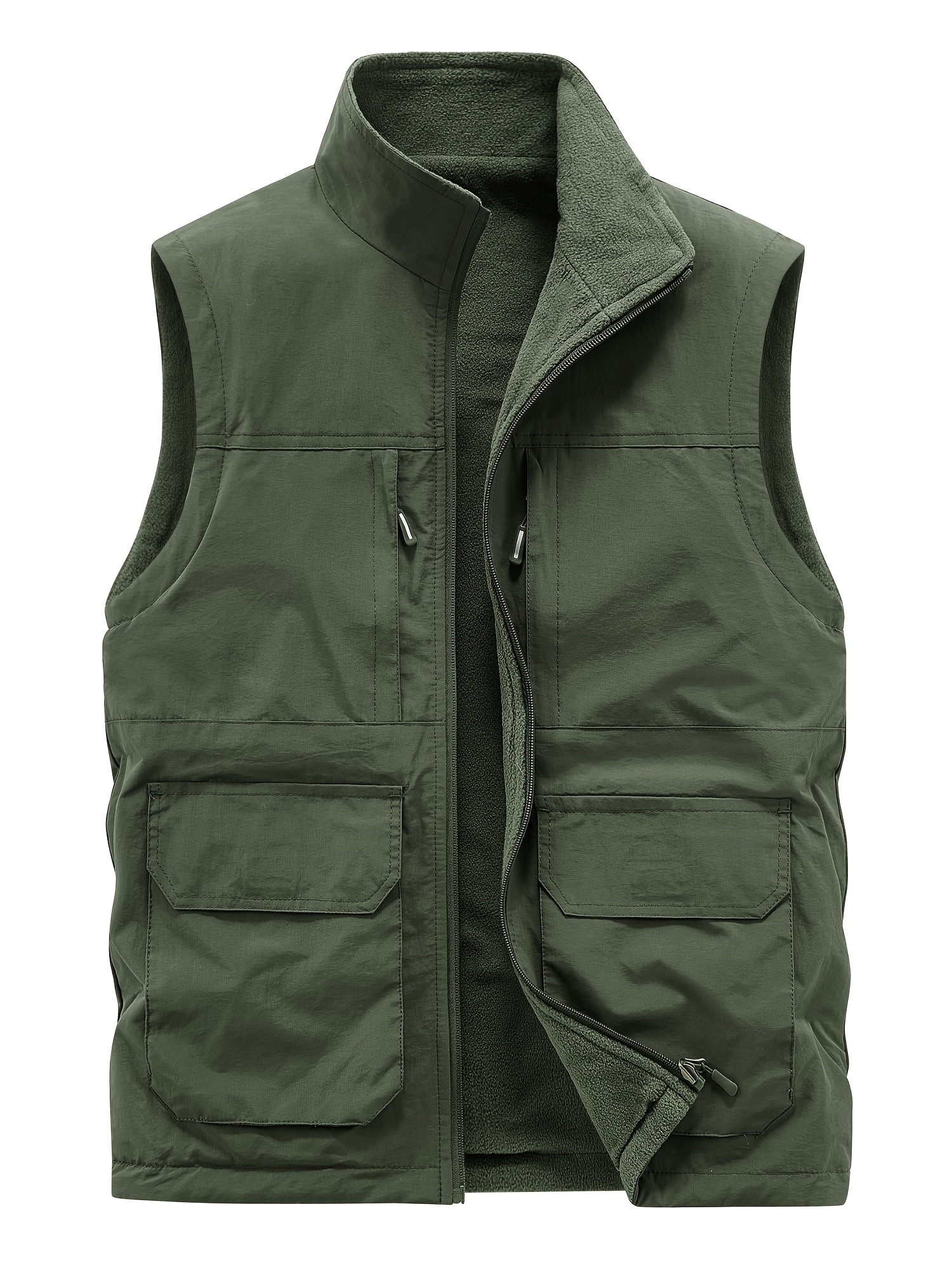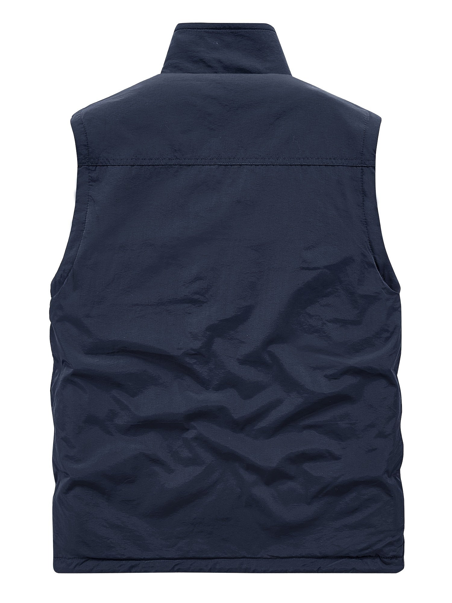 Multi Pockets Reversible Cargo Vest, Men's Casual Outwear Stand Collar Zip Up Vest For Outdoor Fishing Photography