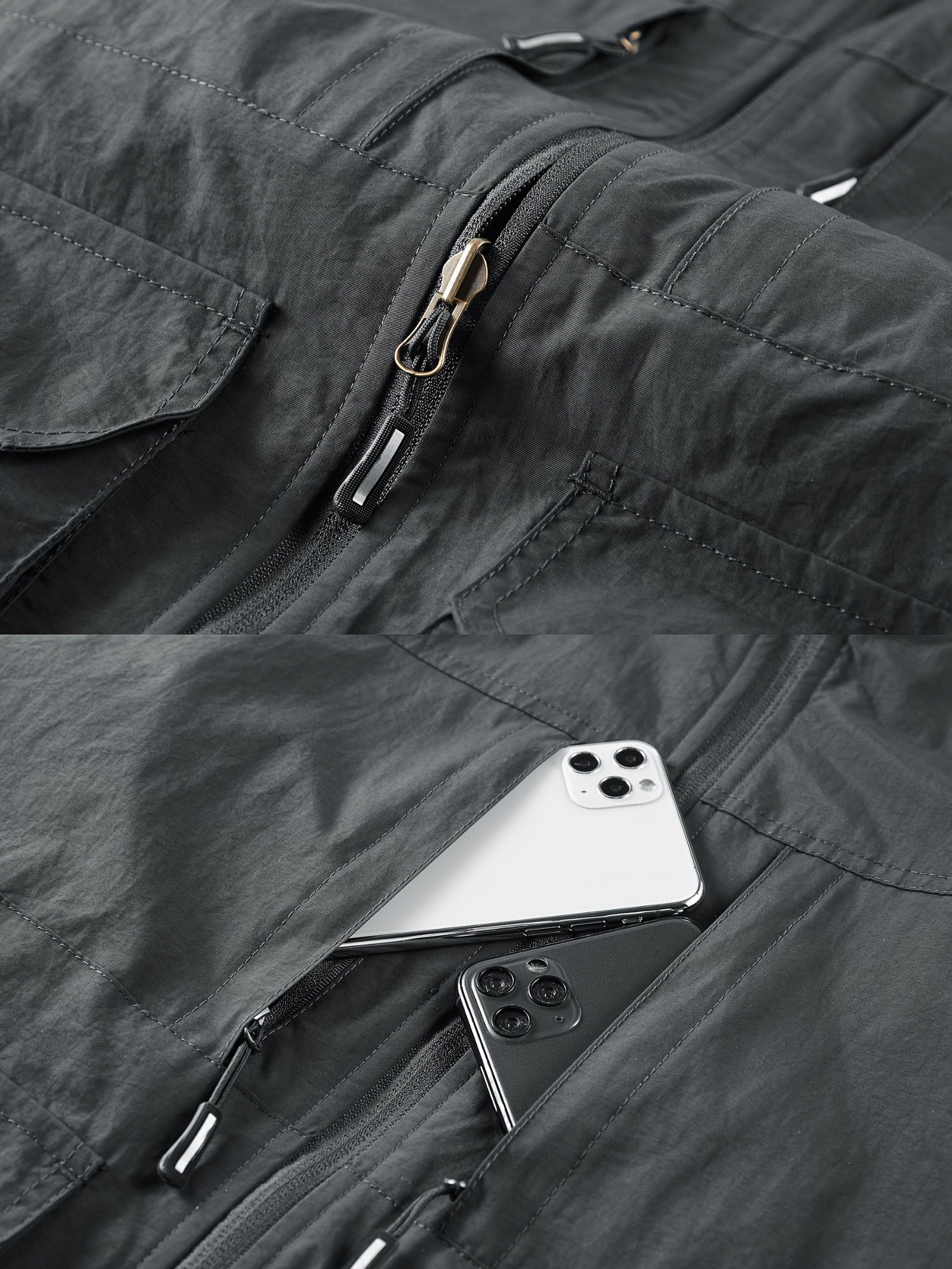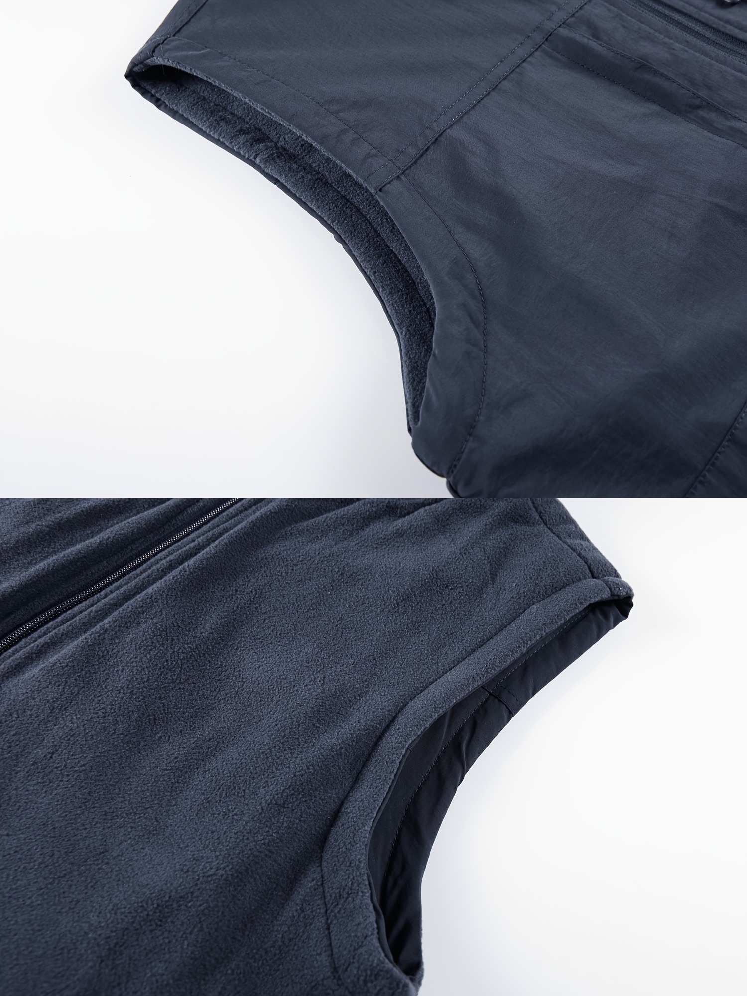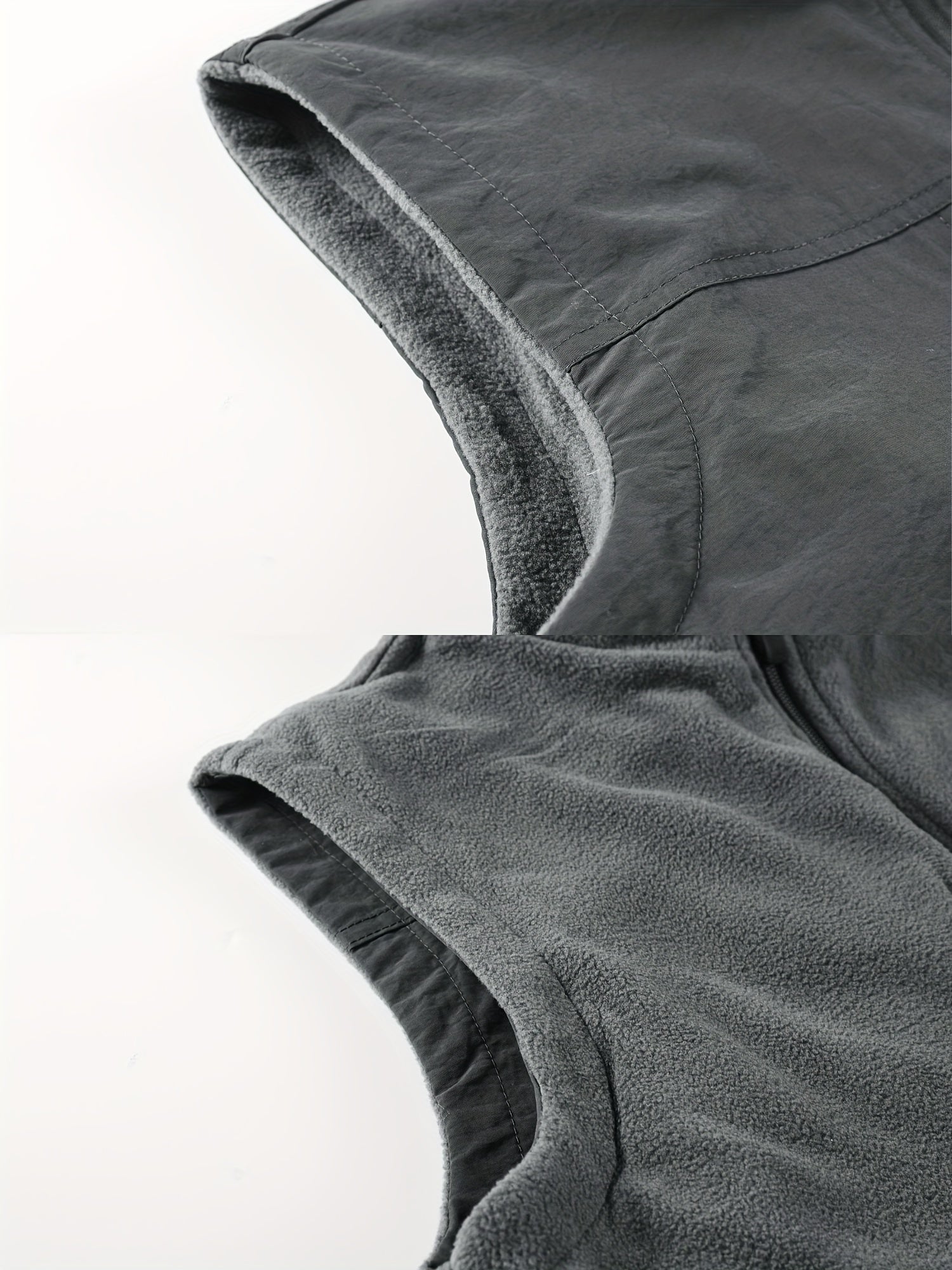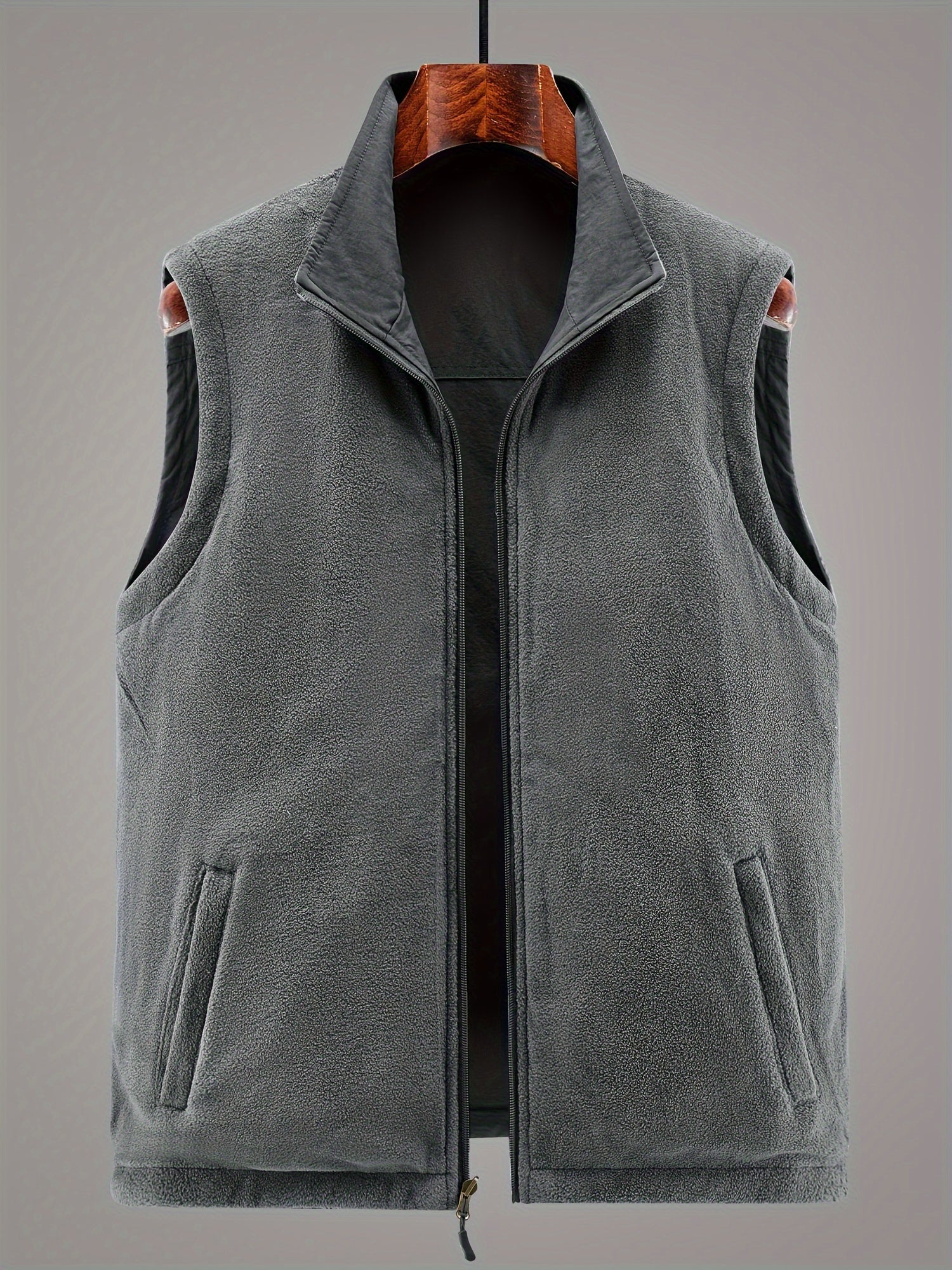 Multi Pockets Reversible Cargo Vest, Men's Casual Outwear Stand Collar Zip Up Vest For Outdoor Fishing Photography