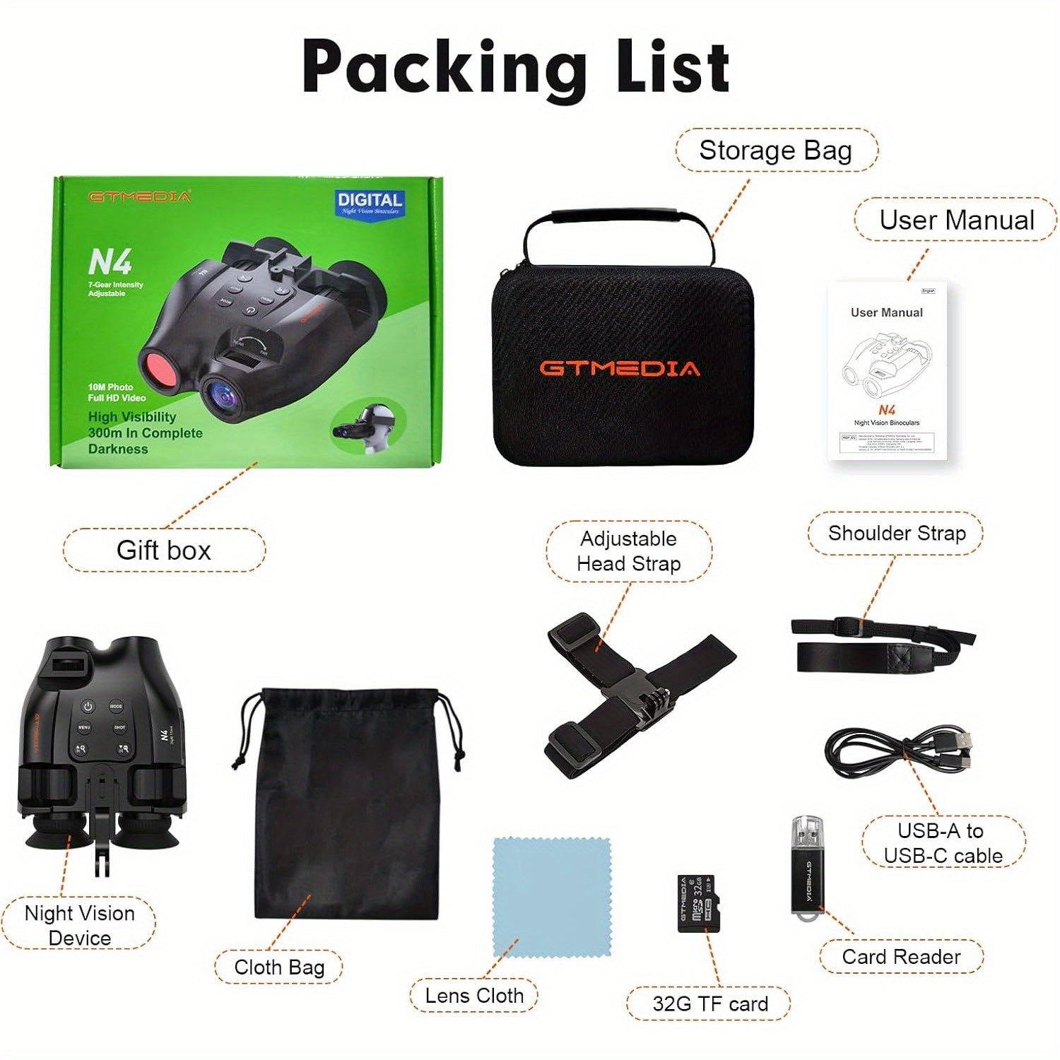 Night Vision Binoculars, Night Vision Goggles, Infrared Night Vision, HD Display Screen, Photo and Video Storage on 32GB TF Card, Head Mounted Hunting Binoculars for Travel & Outdoor Hunting