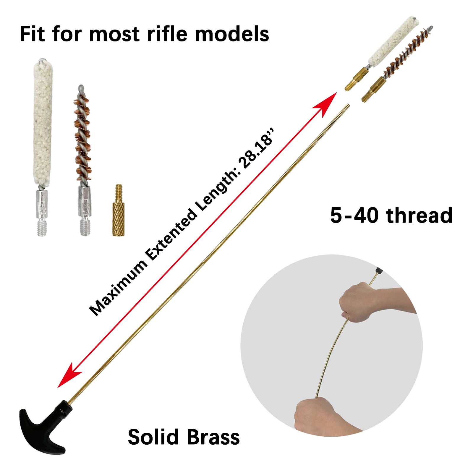 Practical and Convenient: the brass rod of the rifle cleaning kit is detachable, which can be assembled according to the needs of guns of different lengths, so it is easy to carry.