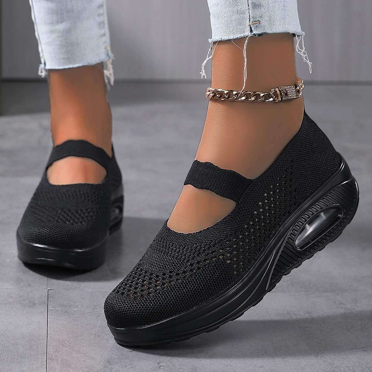 Round toe knitted women's shoes with thick soles and elevated height, single shoe size 35-43, summer breathable casual shoes