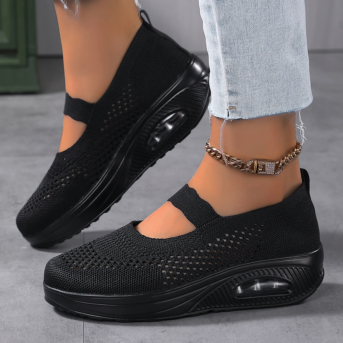 Round Toe Knitted Women'S Shoes With Thick Soles And Elevated Height, Single Shoe Size 35-43, Summer Breathable Casual Shoes