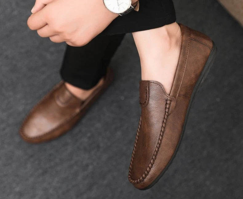 Round Toe Soft Flat Men's Leather Shoes High Quality Fashion Comfortable Designer 2025 Legitimate Luxury Sale Male Casual Shoe