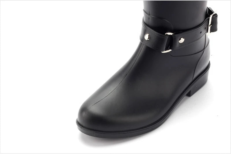 Rubber Boots for Women Waterproof Work Fashion Back Zipper Round Toe High Rain Boots Woman Water Shoes Botas De Caza Espanolas