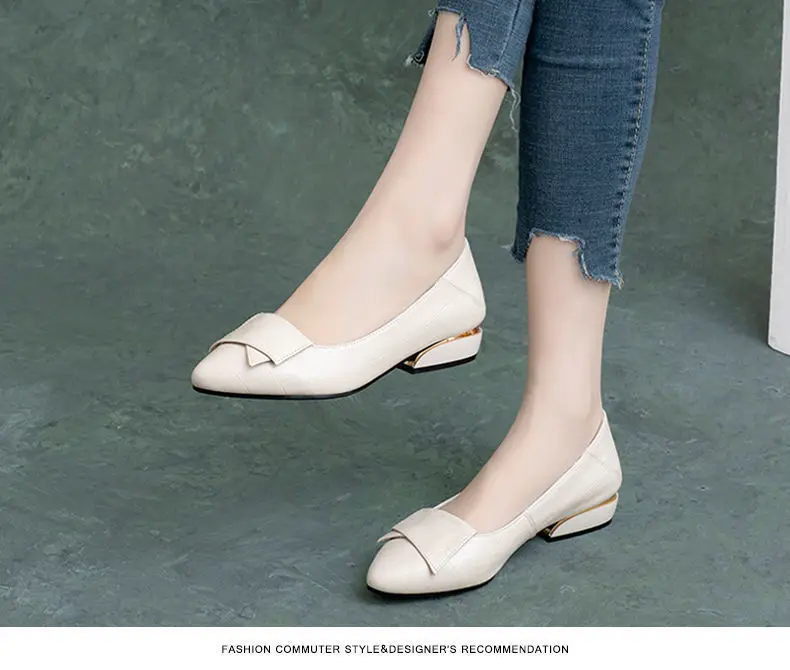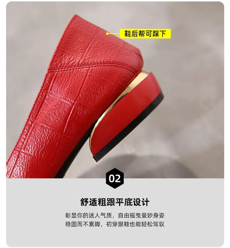 Shoe Women's 2024 New Spring and Autumn Shallow Cut Thick Heel Pointed Toe Women's Shoes Soft Leather Soft Sole Shoes Work Shoes