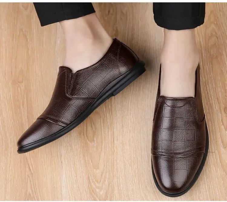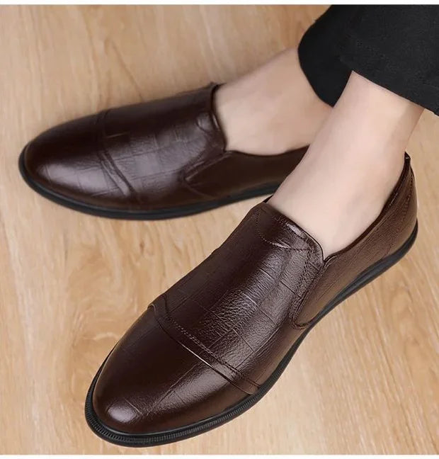 Social Shoe Male Spring Autumn Brown Men's Formal Shoes Round Toe Black Official Leather Casual Cowhide Footwear Clothing Office
