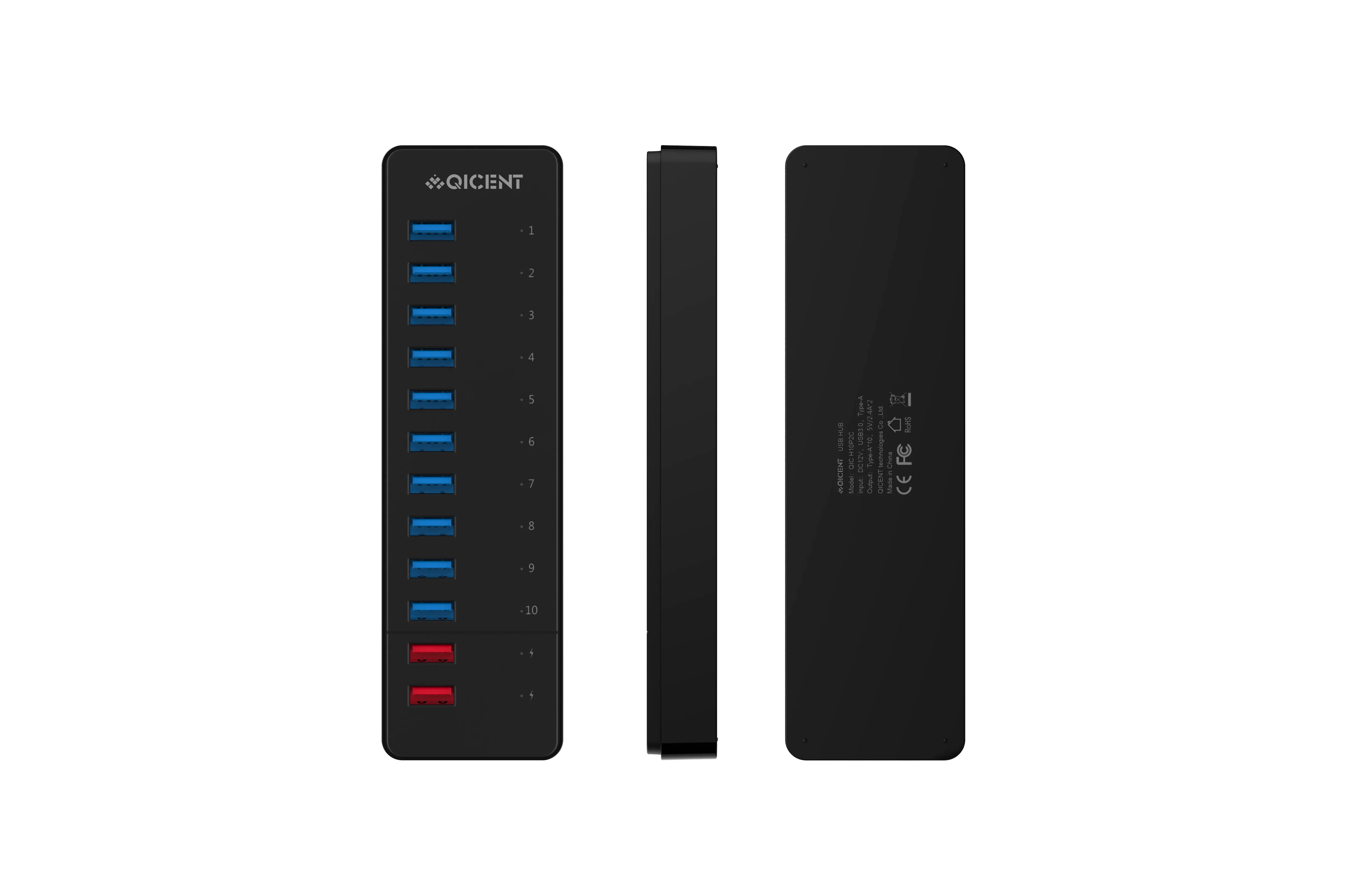 Adaptive high-speed charging where 10 USB ports provide 2A fast charge. Plus 2 charging ports with 2.5V, 2.4A for smartphones and tablets.