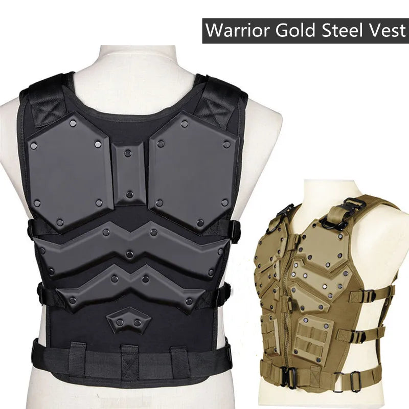 Tactical Gold Steel Vest Military Combat Vest Men's Tactical Hunting Vest Army Adjustable Armor Outdoor CS Training Vest Airsoft