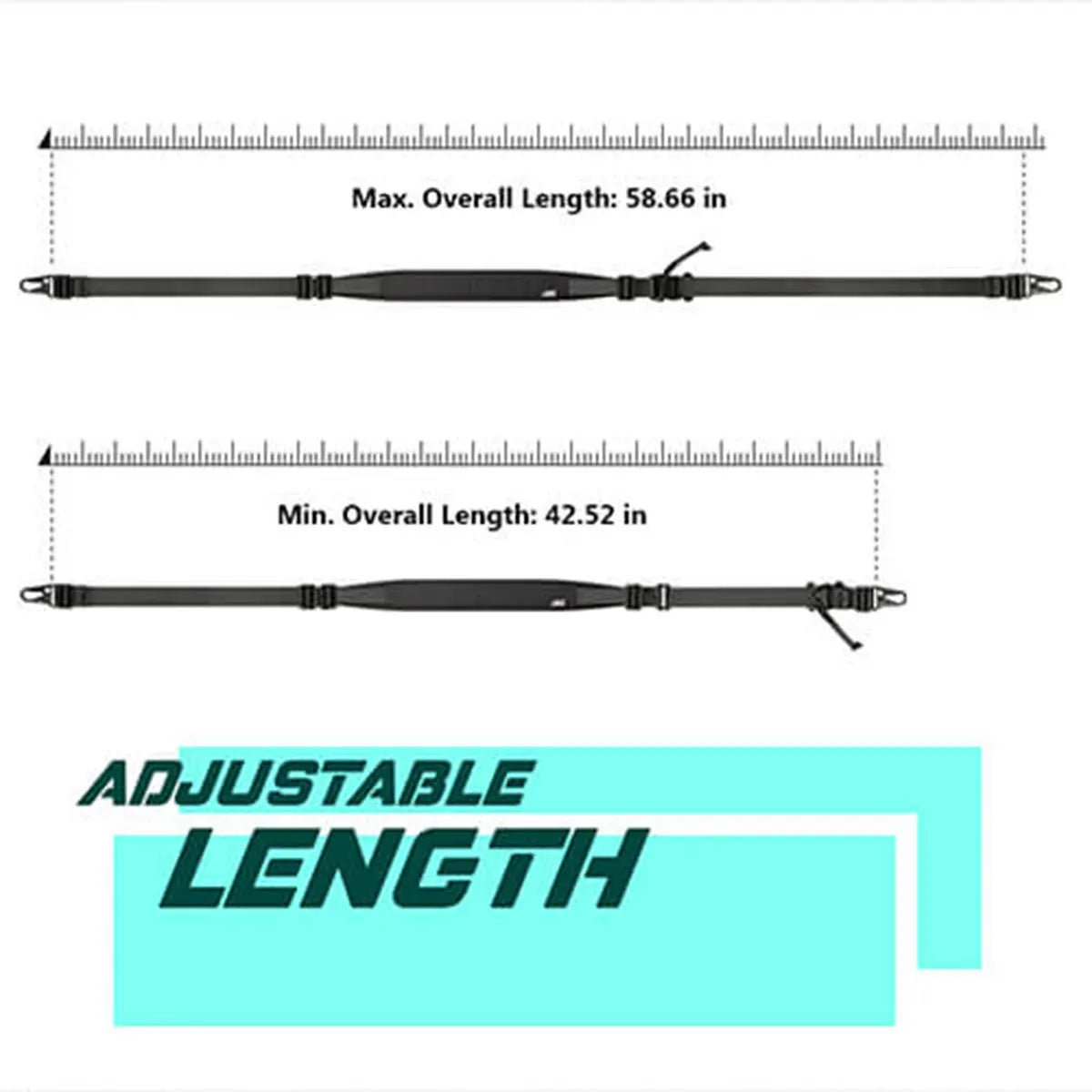5---Can be utilized in one point or two point configurations without hook&loop locker (strap organizer) at the end of webbing.