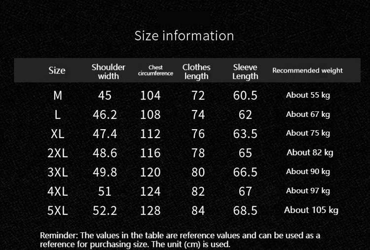 size_info: {"sizeInfoList":[{"length":{"cm":"45","inch":"17.72"},"size":"M","vid":-1},{"length":{"cm":"46.2","inch":"18.19"},"size":"L","vid":-2},{"length":{"cm":"47.4","inch":"18.66"},"size":"XL","vid":-3},{"length":{"cm":"48.6","inch":"19.13"},"size":"XXL","vid":-4},{"length":{"cm":"49.8","inch":"19.61"},"size":"XXXL","vid":-5},{"length":{"cm":"51","inch":"20.08"},"size":"4XL","vid":-6},{"length":{"cm":"52.2","inch":"20.55"},"size":"5XL","vid":-7},{"length":{"cm":"54.4","inch":"21.42"},"size":"6XL","vid":-8}]}