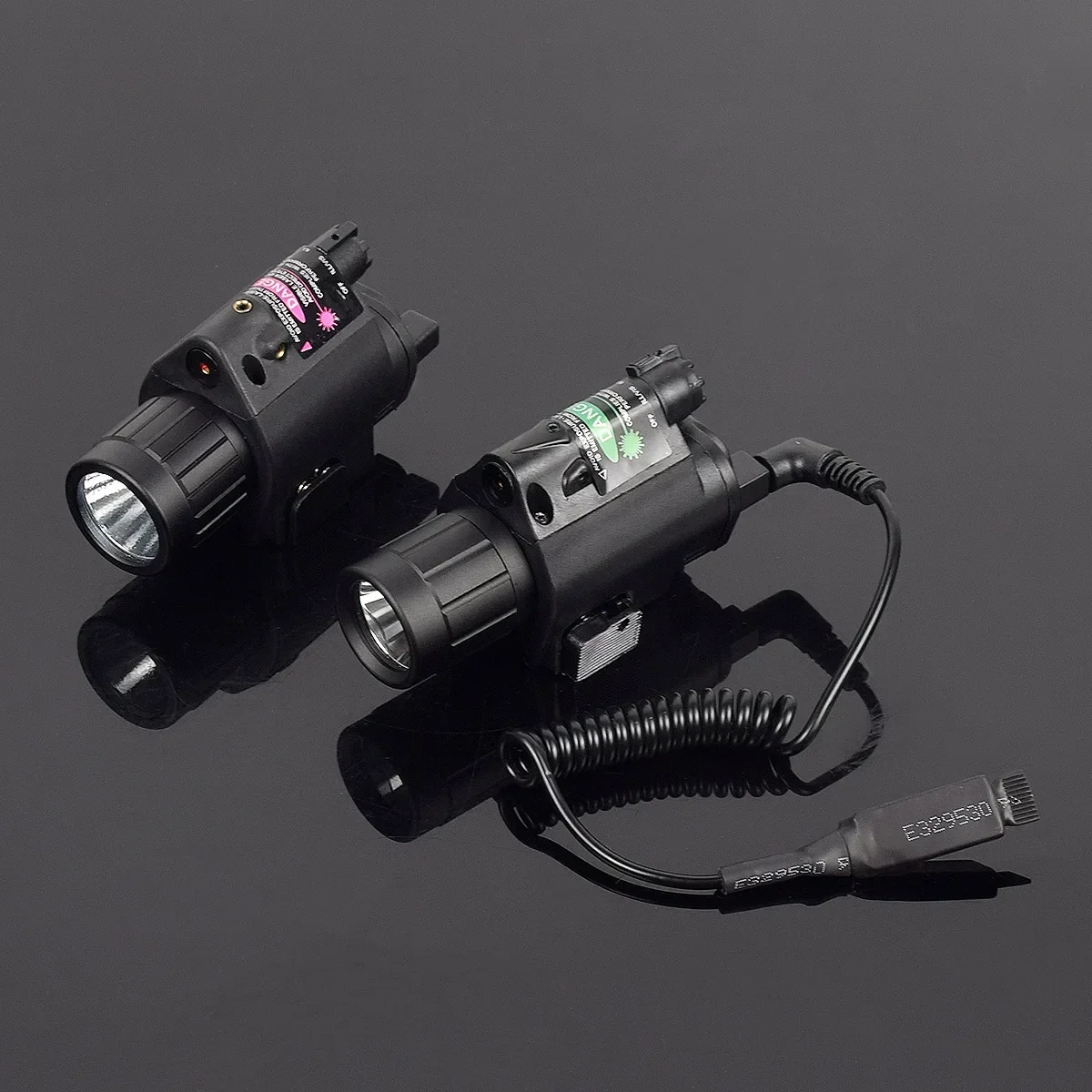 Dual Switches: Button switch turns on continuous beam of the flashlight or/and la-ser sight. Included cord remote switch turns flashlight or/and la-ser sight momentarily.