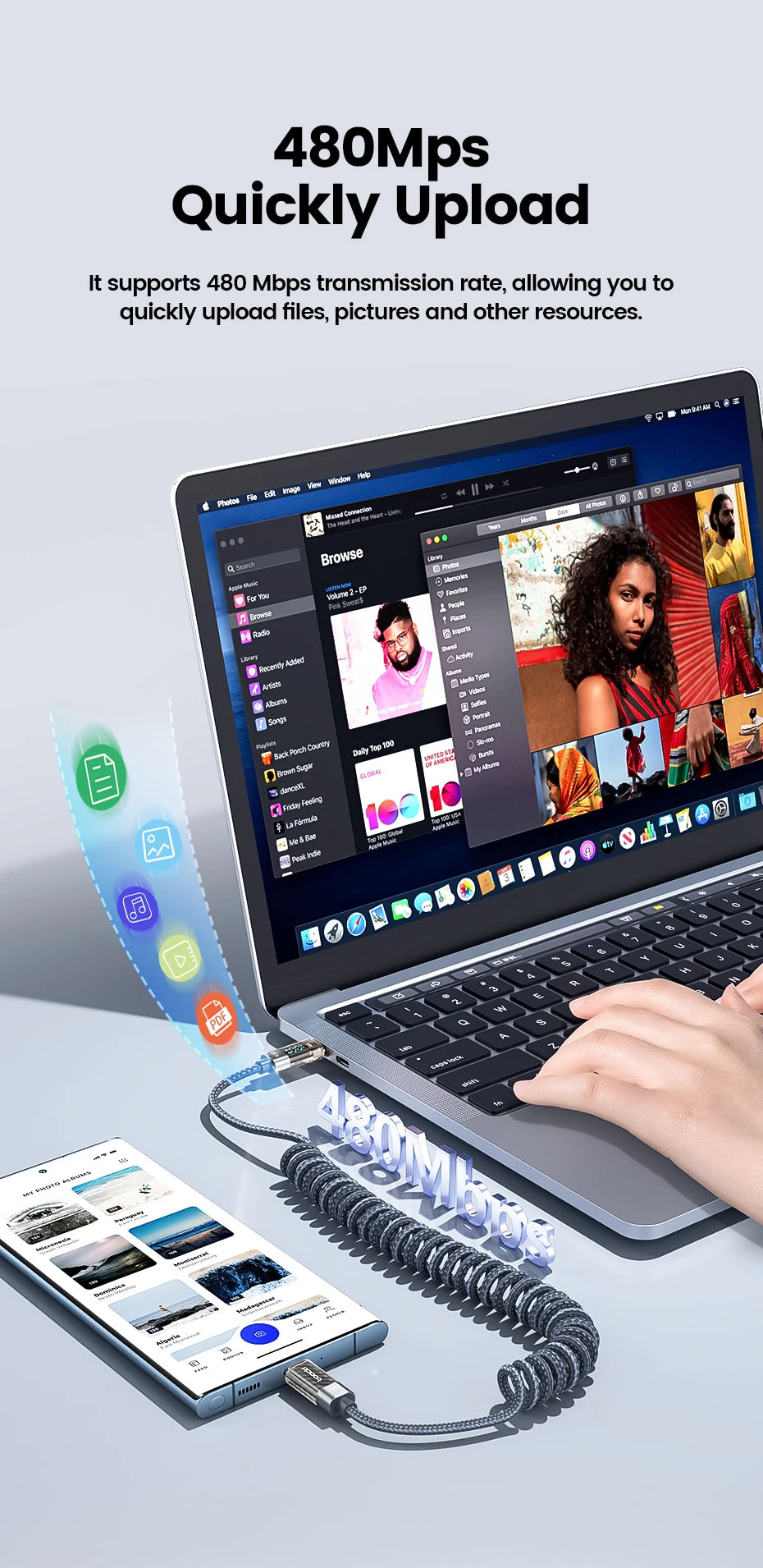 Length: 1.8m Function: PD fast charge + USB2.0 transmission
