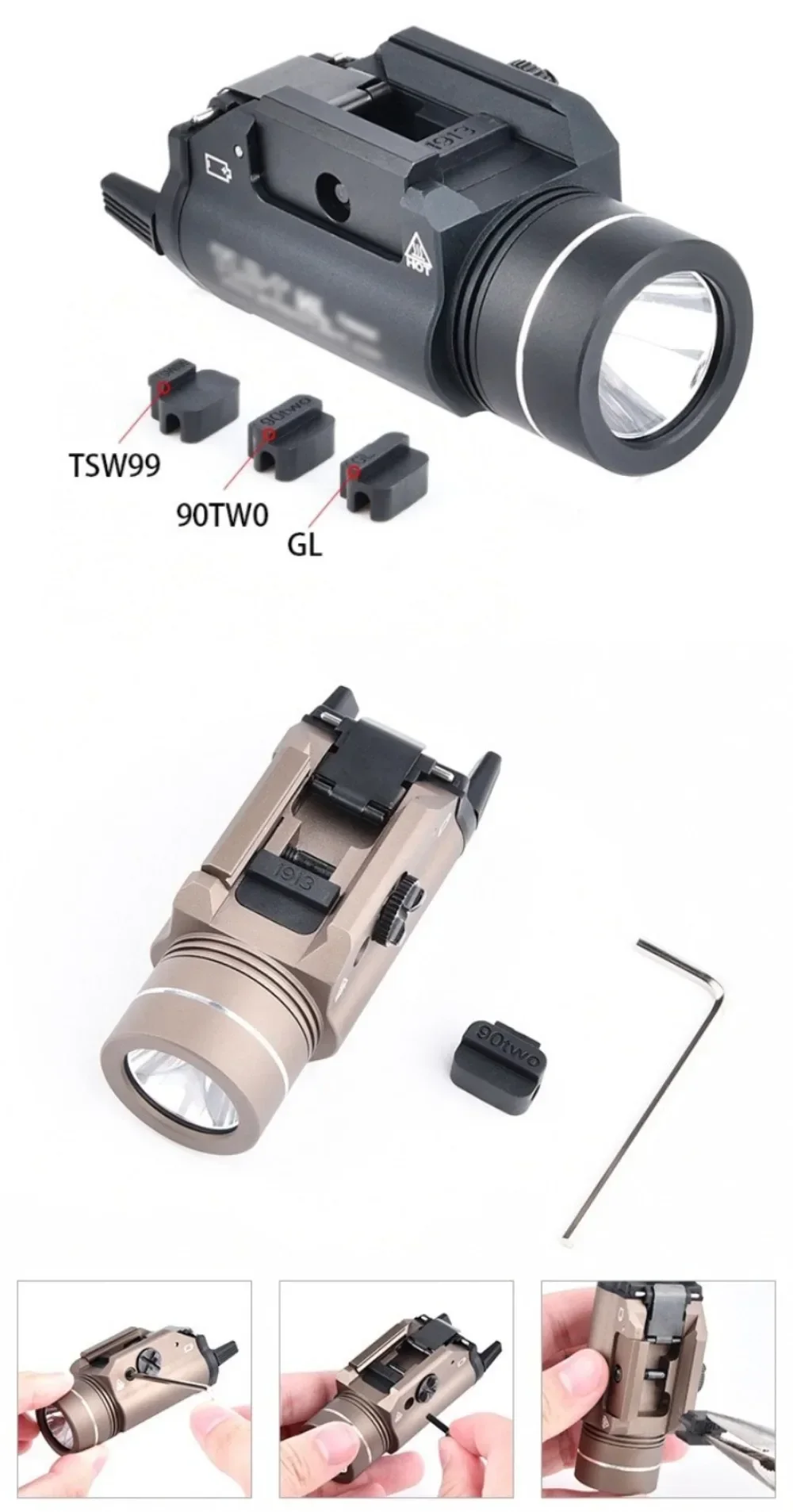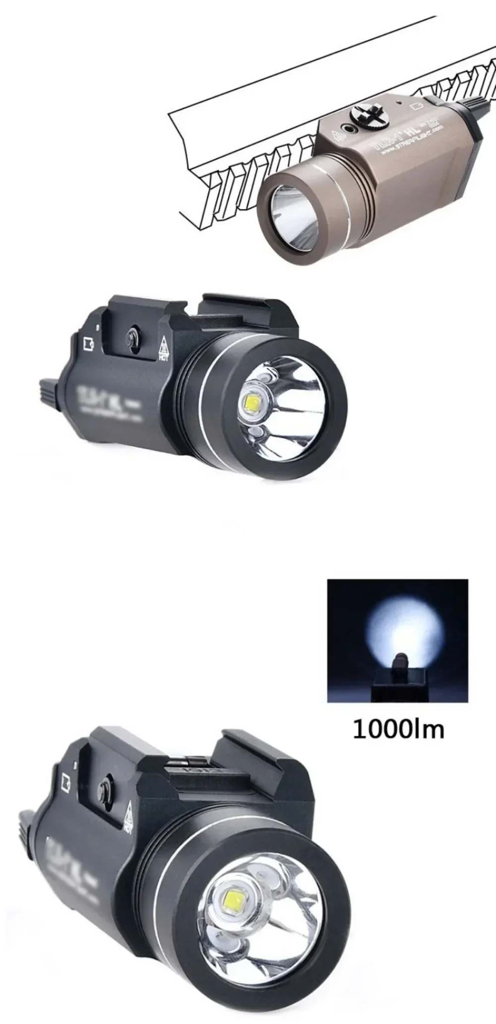 TR-1 Tactical Weapon Light 1000 Lumen LED Electronic Hanging Flashlight Outdoor Shooting with Rail Locating Key Fit 20Mm Rail