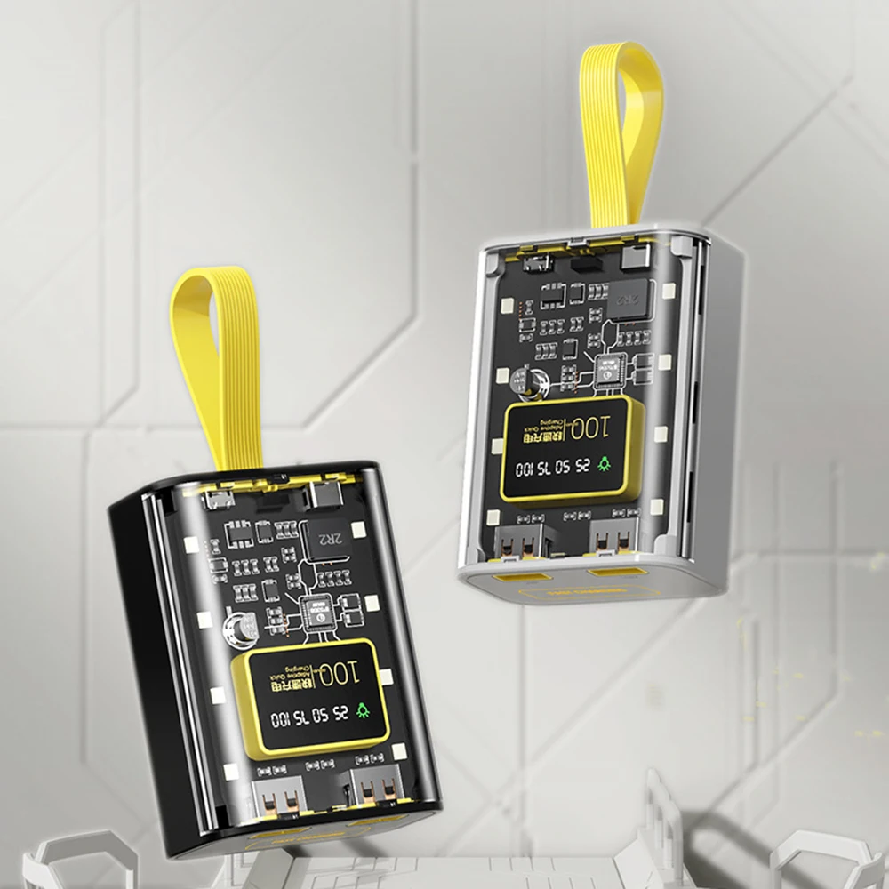 1. Dual USB output, Micro+Type-C dual input, transparent shell full of technology, warm LED night light.