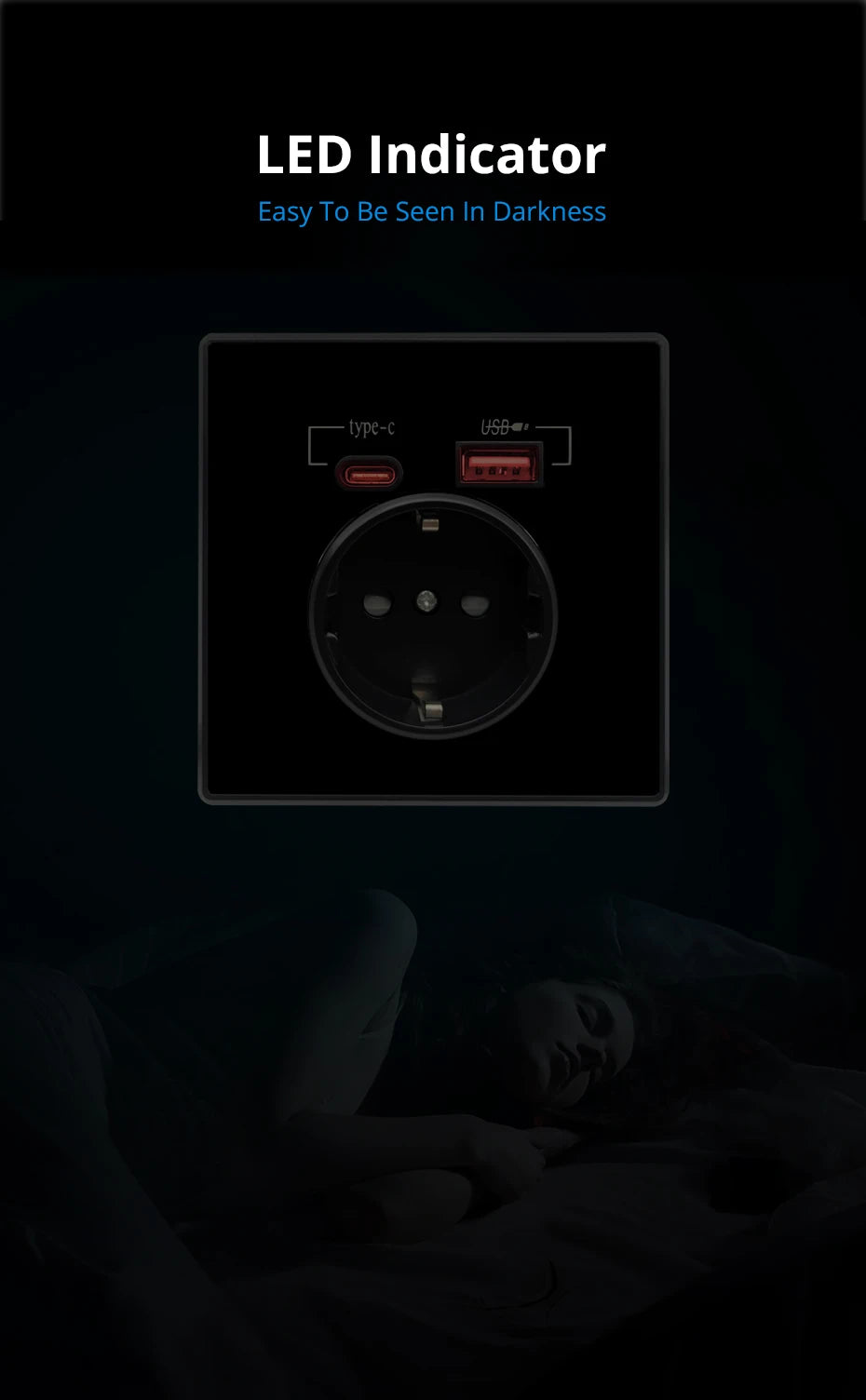 Wallpad Type-C Outlet Black Acrylic Panel Wall EU Russia Spain German Standard Power Socket With USB Charge Port 5V 2100mA