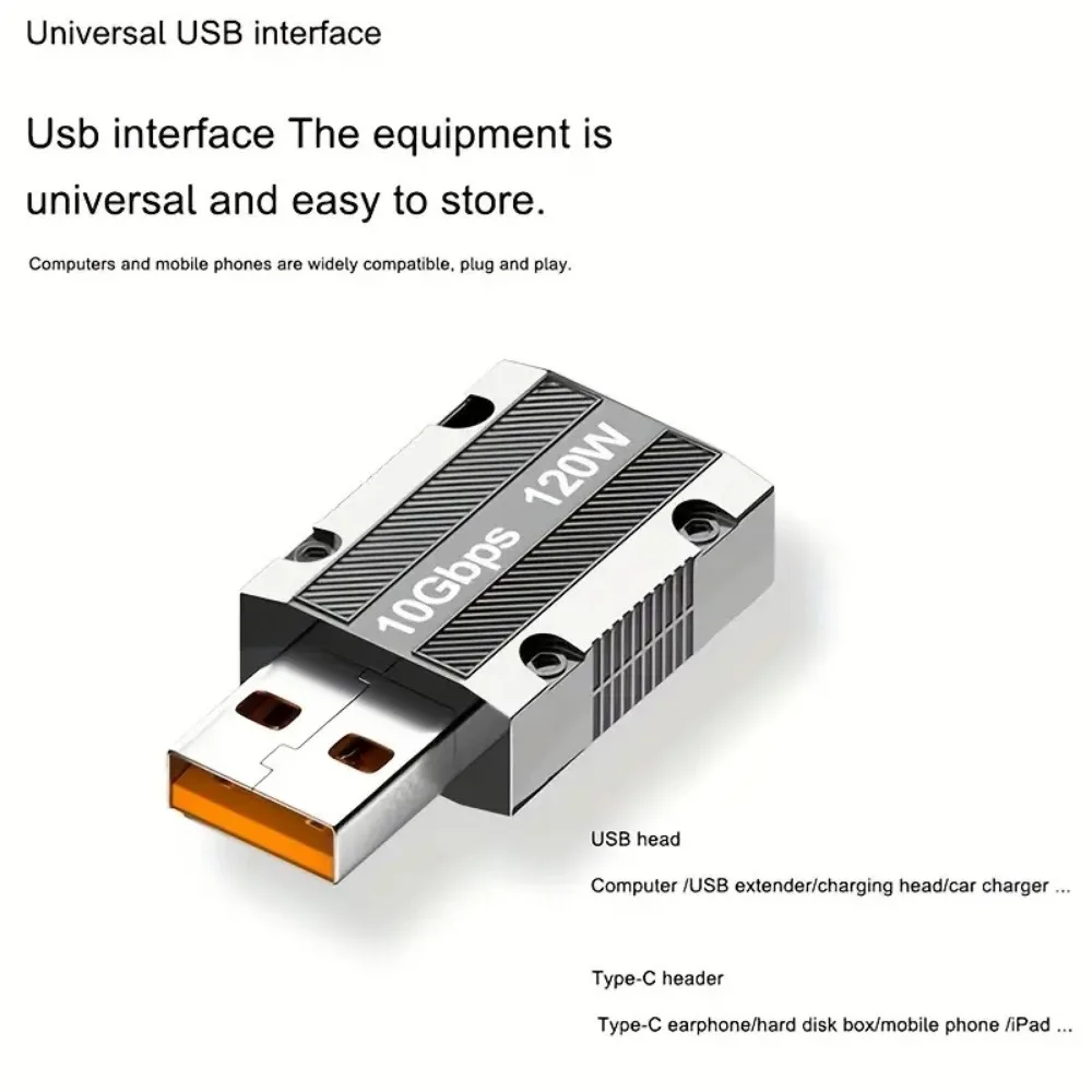 TYPE-C Female to USB Male 120W Fast Charging Zinc Alloy Mechanical Style 10GBPS Fast Transmission OTG Adapter