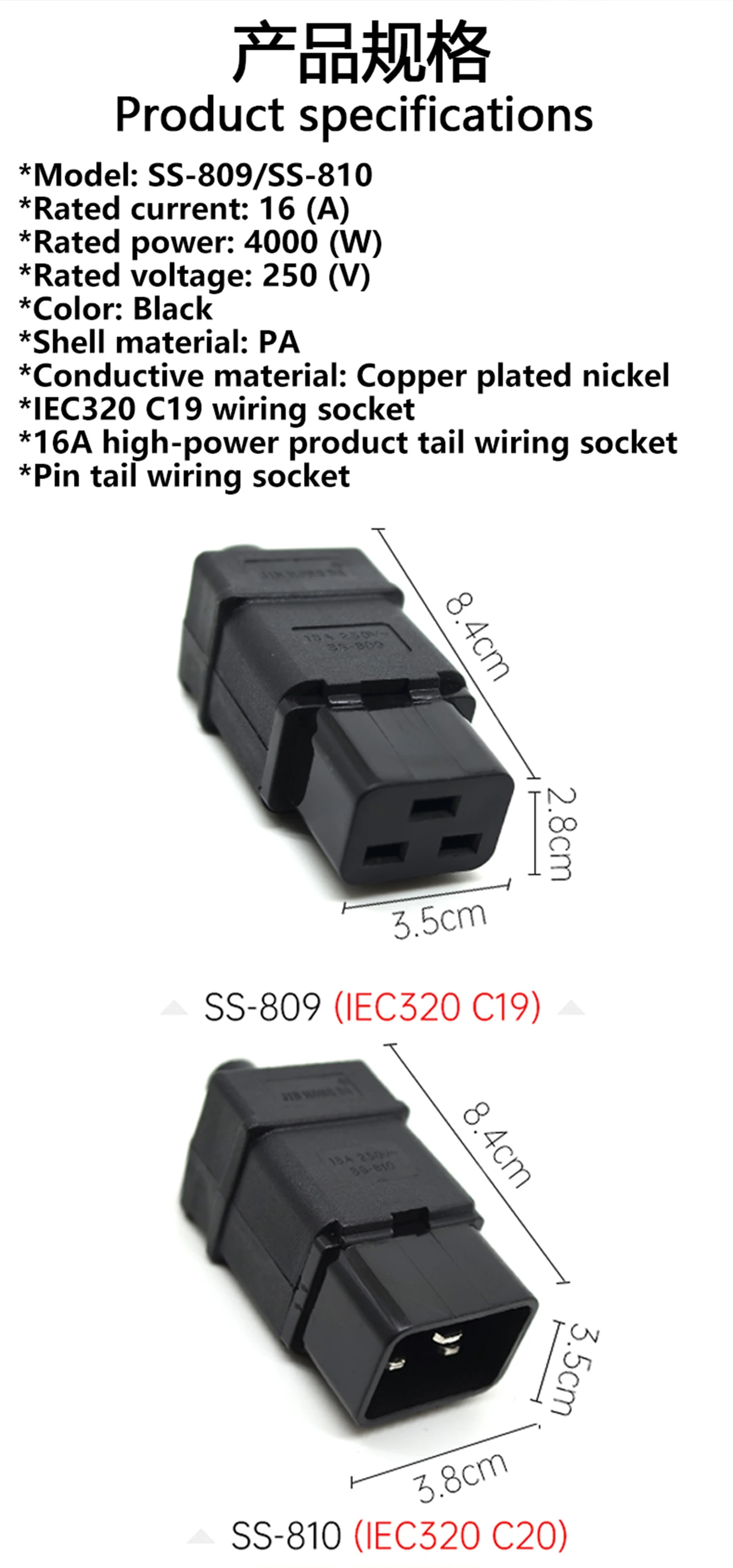 Universal 250V 16A AC Standard IEC320 C20 C19 AC Electrical Power Cable Cord Connector PDU/UPS Removable Male female socket plug