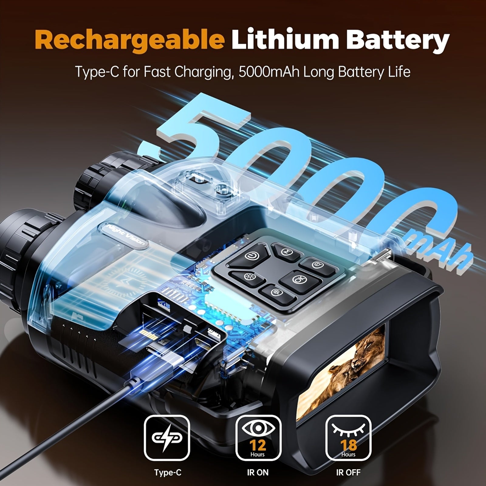 Upgraded 8x 4K Ultra HD Digital Night Vision Binoculars, 3-inch High Resolution Display, 5000mAh Battery And Safe And Reliable Tactical Flashlight - Perfect for Outdoor Night Adventures And Wildlife Spotting, Great Gift for M