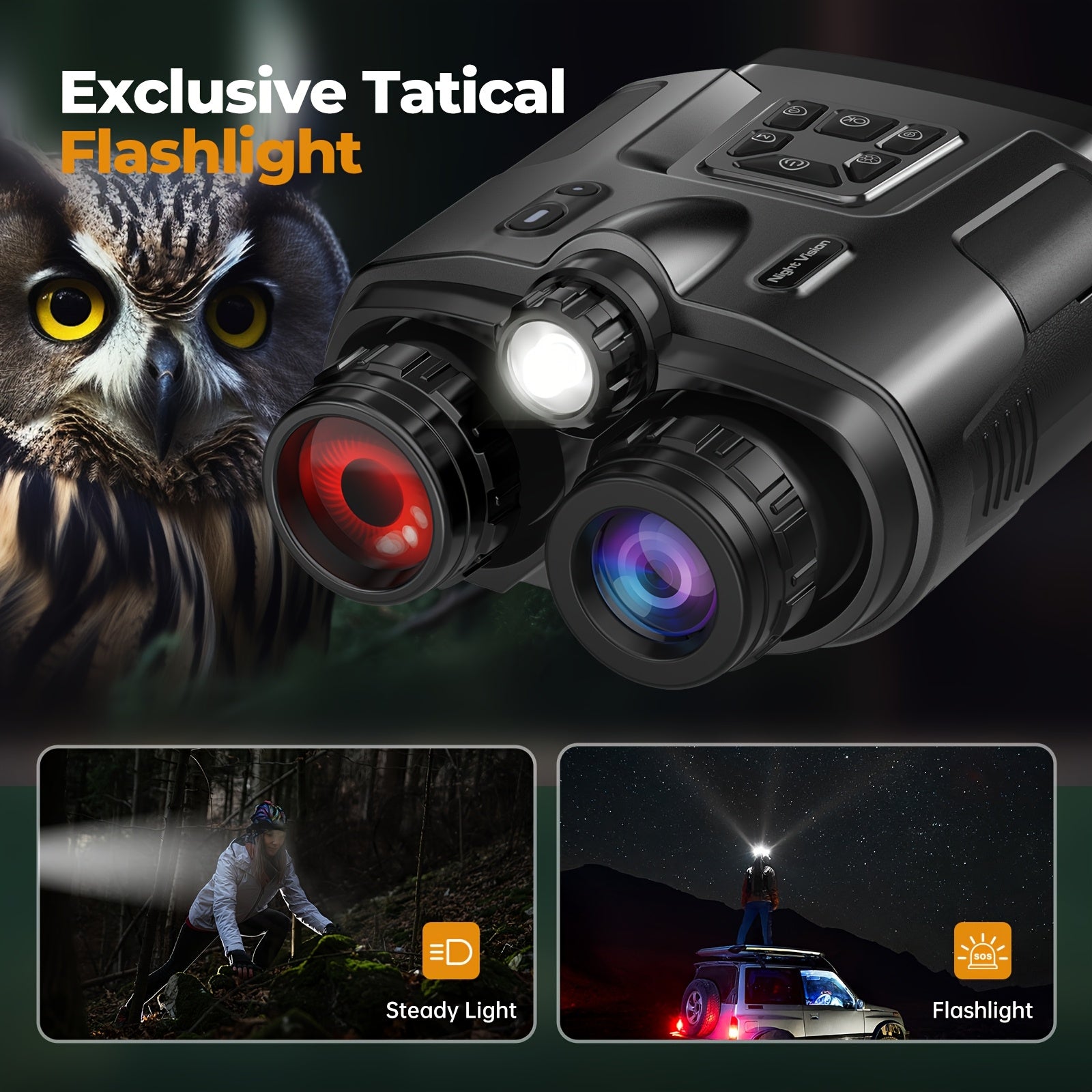 [Safe and Reliable Tactical flashlight]:The night vision binoculars can be used for up to 18 hours and have a built-in tactical light with a long range. The tactical light can be used as a flashlight or as an emergency signaling device in the outdoors.