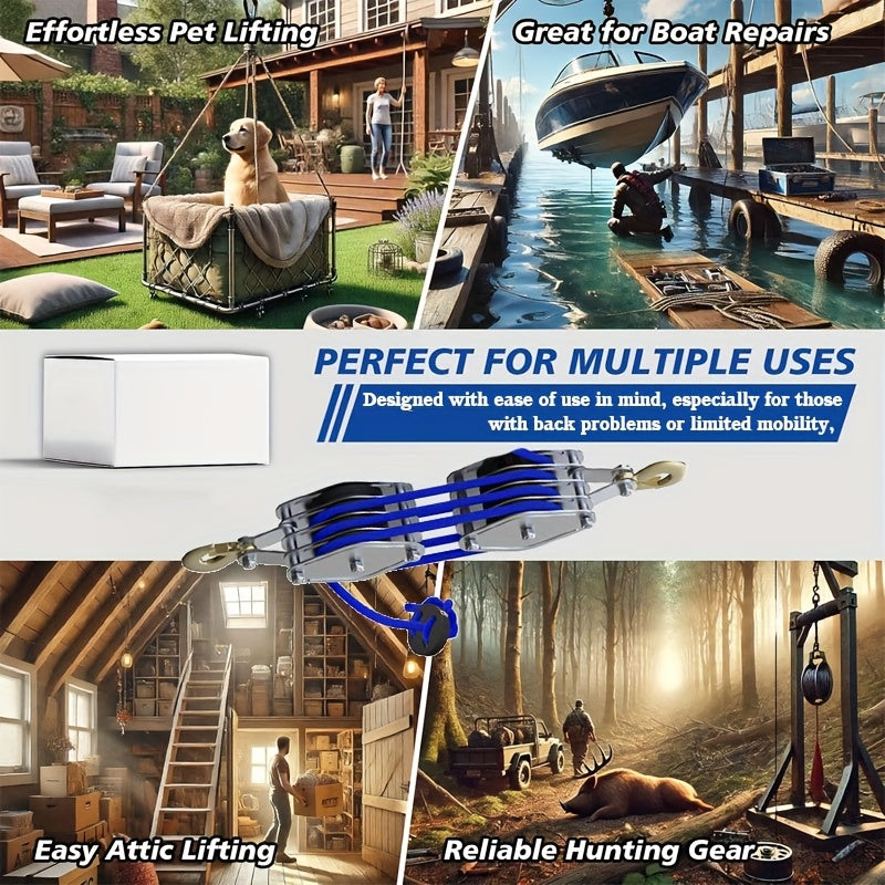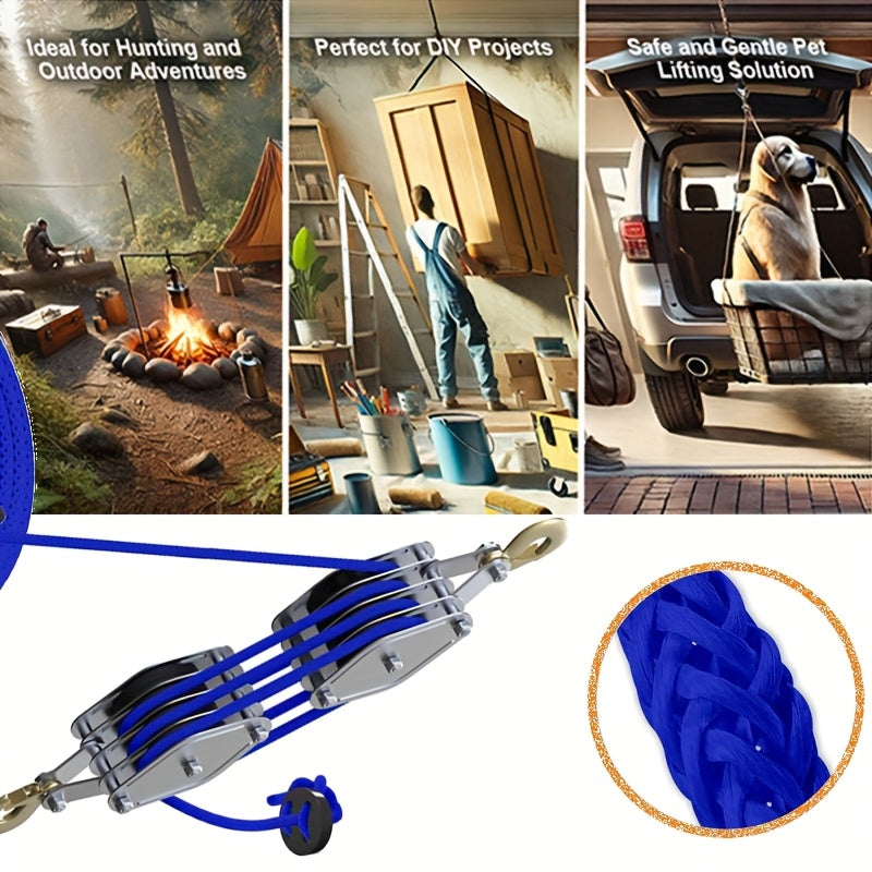 Upgraded Rope Pulley Lifter, 8:1 Elevating Force Pulley Set and Sliding System, Heavy-Duty Load Capacity, 19.81 meter Rope Lifting Machine for Hunting Garage Warehouse