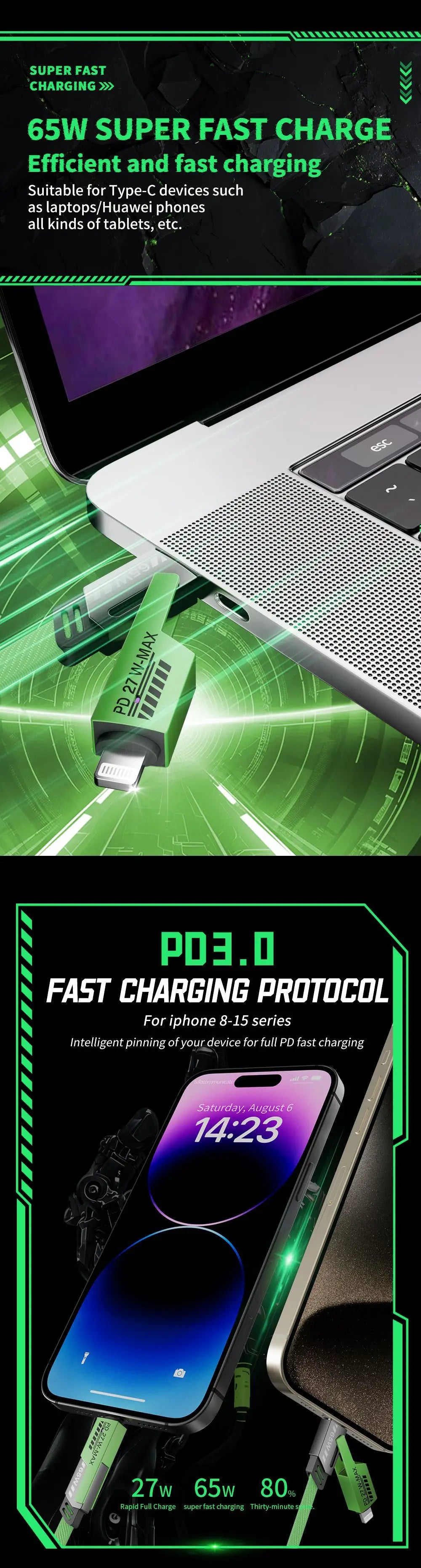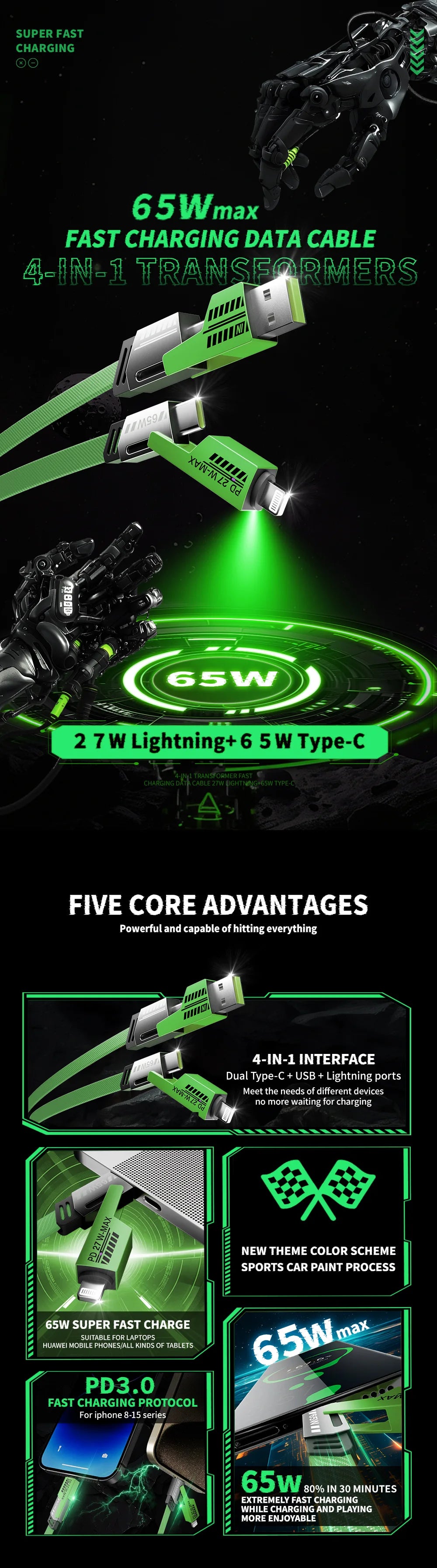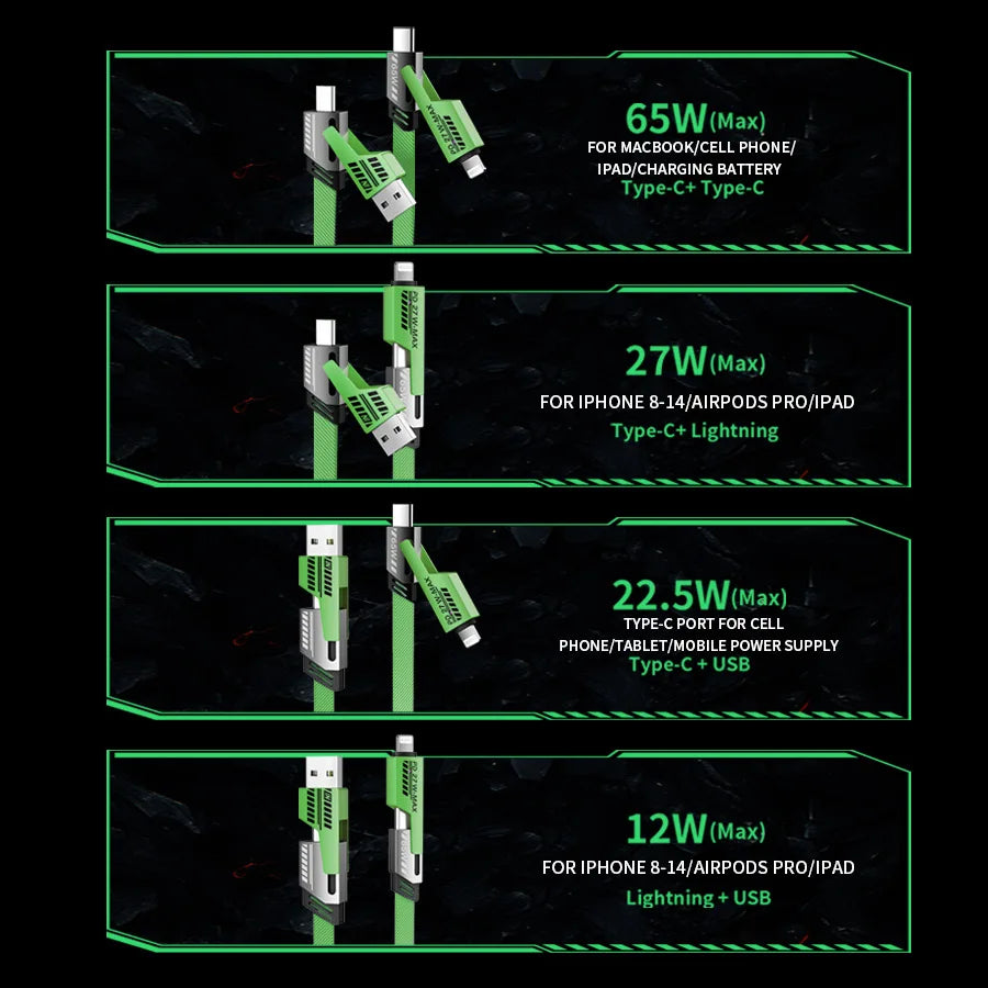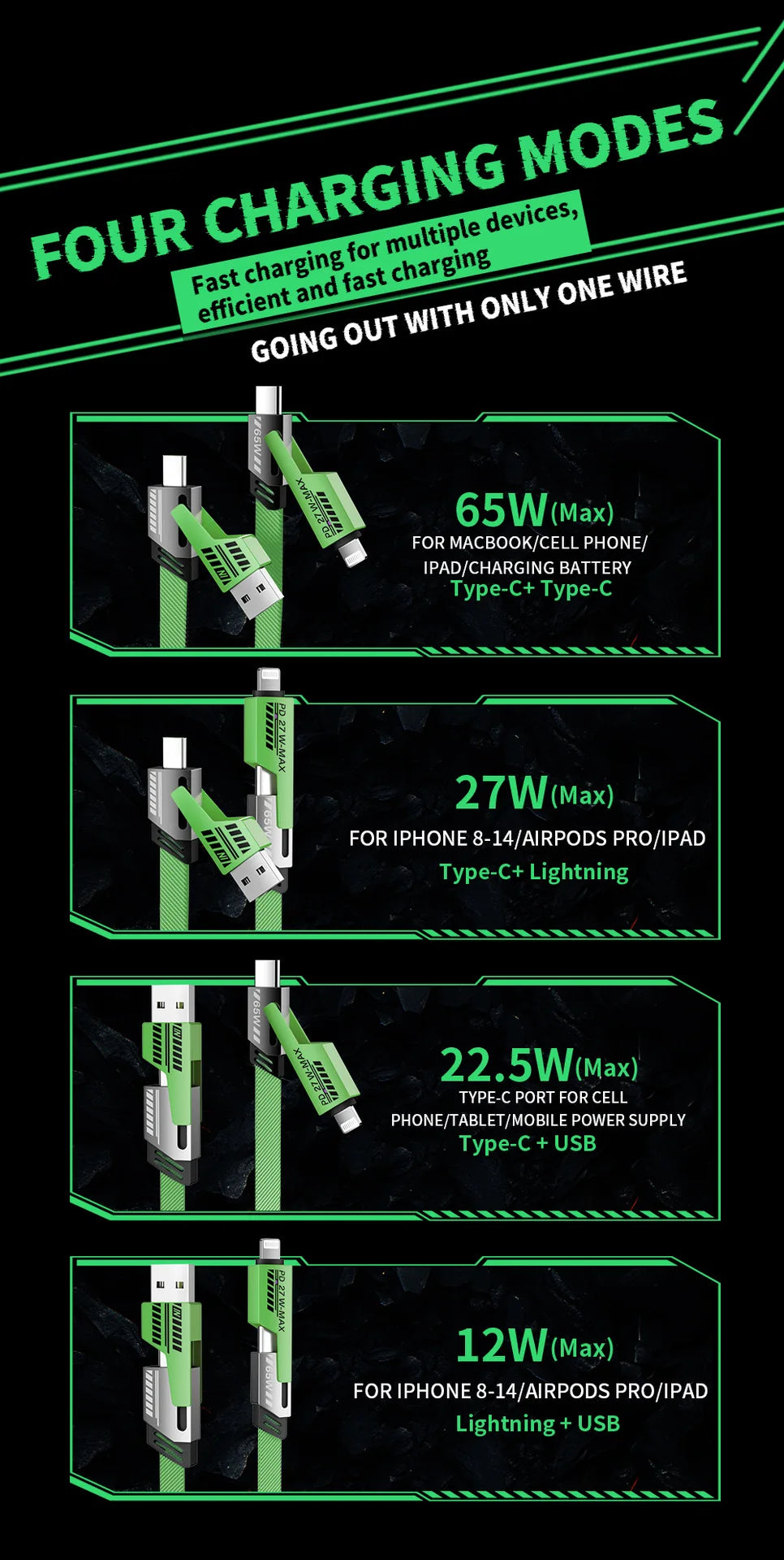USB C Cable, 4-in-1 USB-C Cable,65W USB-C Charger Cable with Hook-and-Loop Fastener and Cable Management
