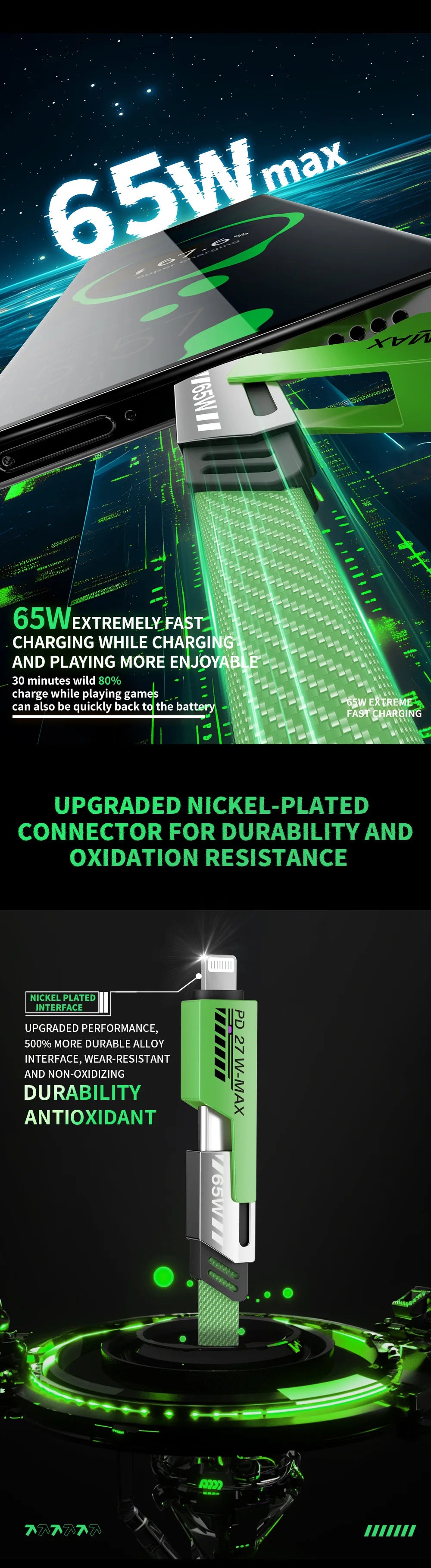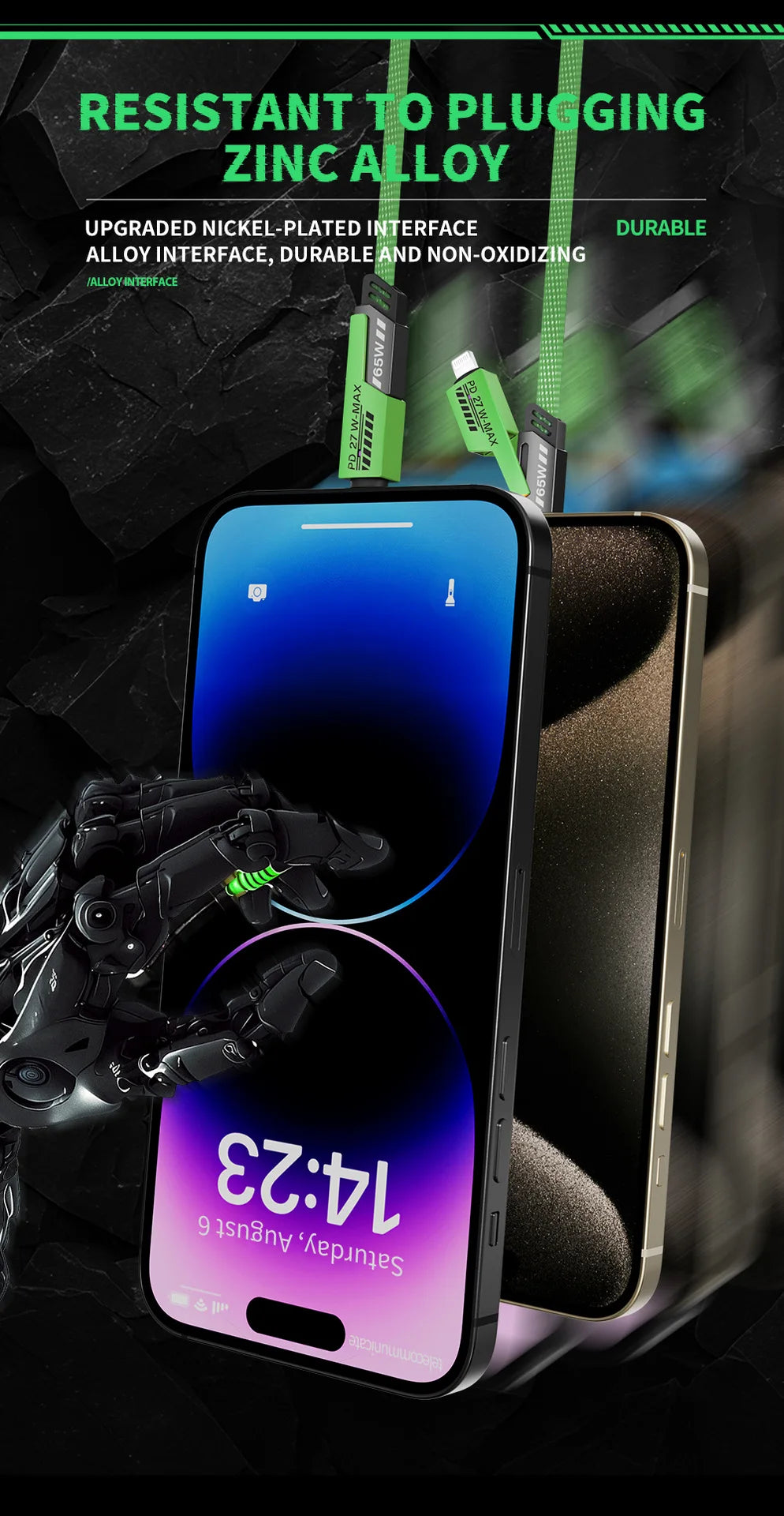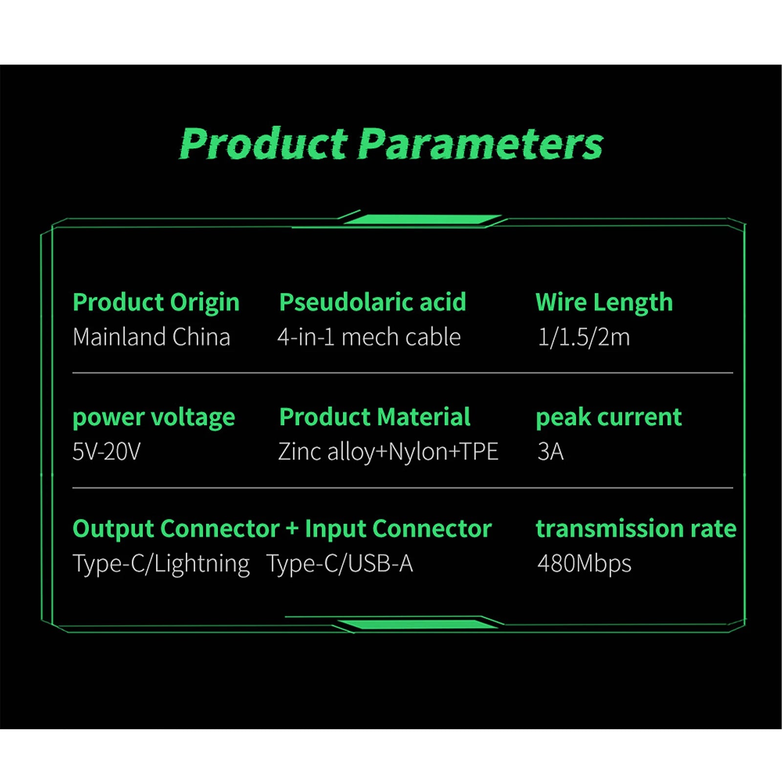 USB C Cable, 4-in-1 USB-C Cable,65W USB-C Charger Cable with Hook-and-Loop Fastener and Cable Management