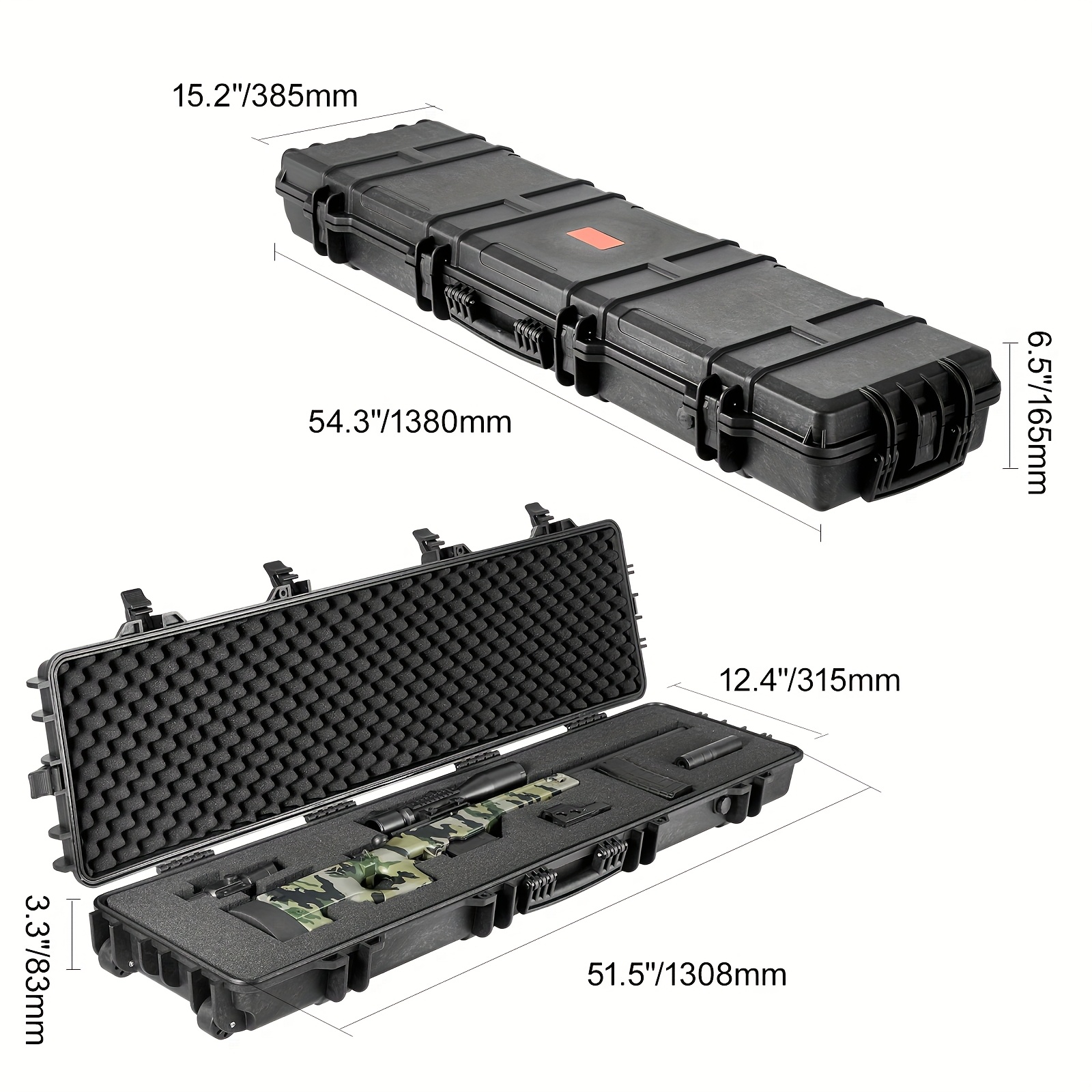 VEVOR 127.0cm Lockable Rifle Case with Wheels, 3-Layer Fully-Protective Foam, High Quality & Crushproof Hard Gun Case for Two Rifles/Shotguns & Airsoft Guns - Hunting & Fishing Gear, Gun Accessories