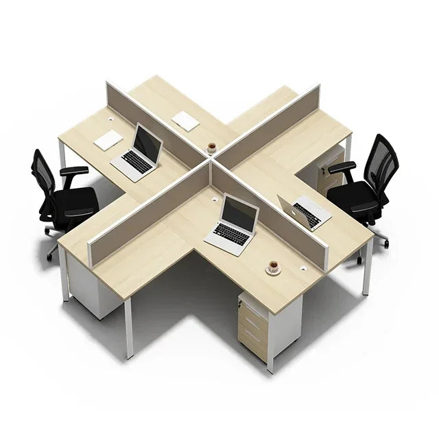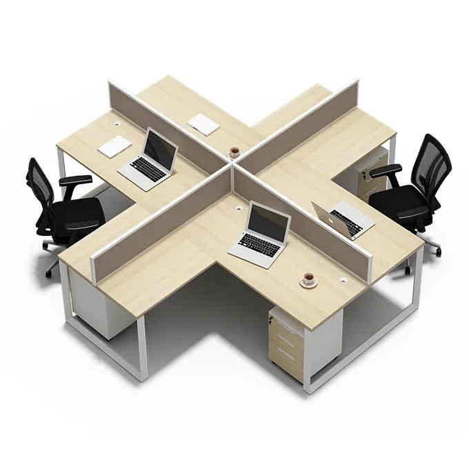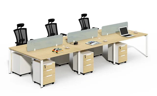 Specifications: | *High quality anti scratch&heat resistant melamine laminated chipboard-E1 grade *Table tops: 25mm with 2mm PVC edge banding with round plastic cable cover * Each workstation size : 1200Wx600D *Table top partiton panel : 3 PCS x800x300H 5mm termpered glass *6 x 3 drawers mobile pedestals --400Wx480Dx600H with 3 section rails,centrol lock and insert type castors *Powder coating metal frame: 60x60x80x1.5mm,supporting bar:40x40x1.2mm *Door Type metal frame with traiangle shape |